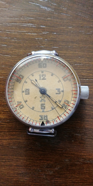 Обратите внимание на вторую головку на 2 часа. Это не заводная головка, это винтовой фиксатор положения безеля. Чтобы случайно не сбить установку точного времени в тесной кабине самолета.