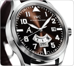 Швейцарская компания IWC c 8 по 14 декабря 2008 года проведет интернет-аукцион, главным и единственным лотом которого станет уникальная модель авиачасов IWC, выпущенная в честь легендарного писателя и летчика Антуана де Сент-Экзюпери Pilot's Watch UTC Edition Antoine de Saint Exupery. Эта модель представлена в единственном экземпляре в платиновом корпусе диаметром 44 мм. Циферблат табачно-коричневого цвета украшен инициалом «А.» - так подписывался Сент-Экзюпери. Автоматический механизм Calibre 30710 (частота 28 800 пк/ч, запас хода 42 ч) оснащен центральной секундной стрелкой с функциями: основа для точной коррекции, календарь-дата, модуль UTC. UTC - это скоординированное всемирное время по Гринвичскому меридиану, по которому ориентируются все пилоты мира, дабы не путаться во время полетов в разных часовых поясах. Но в этих часах функцию UTC можно использовать и как обычный индикатор времени во втором часовом поясе GMT.
