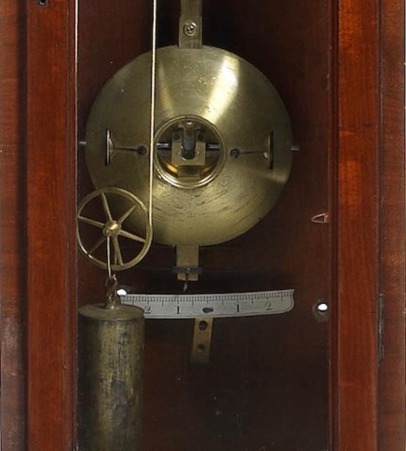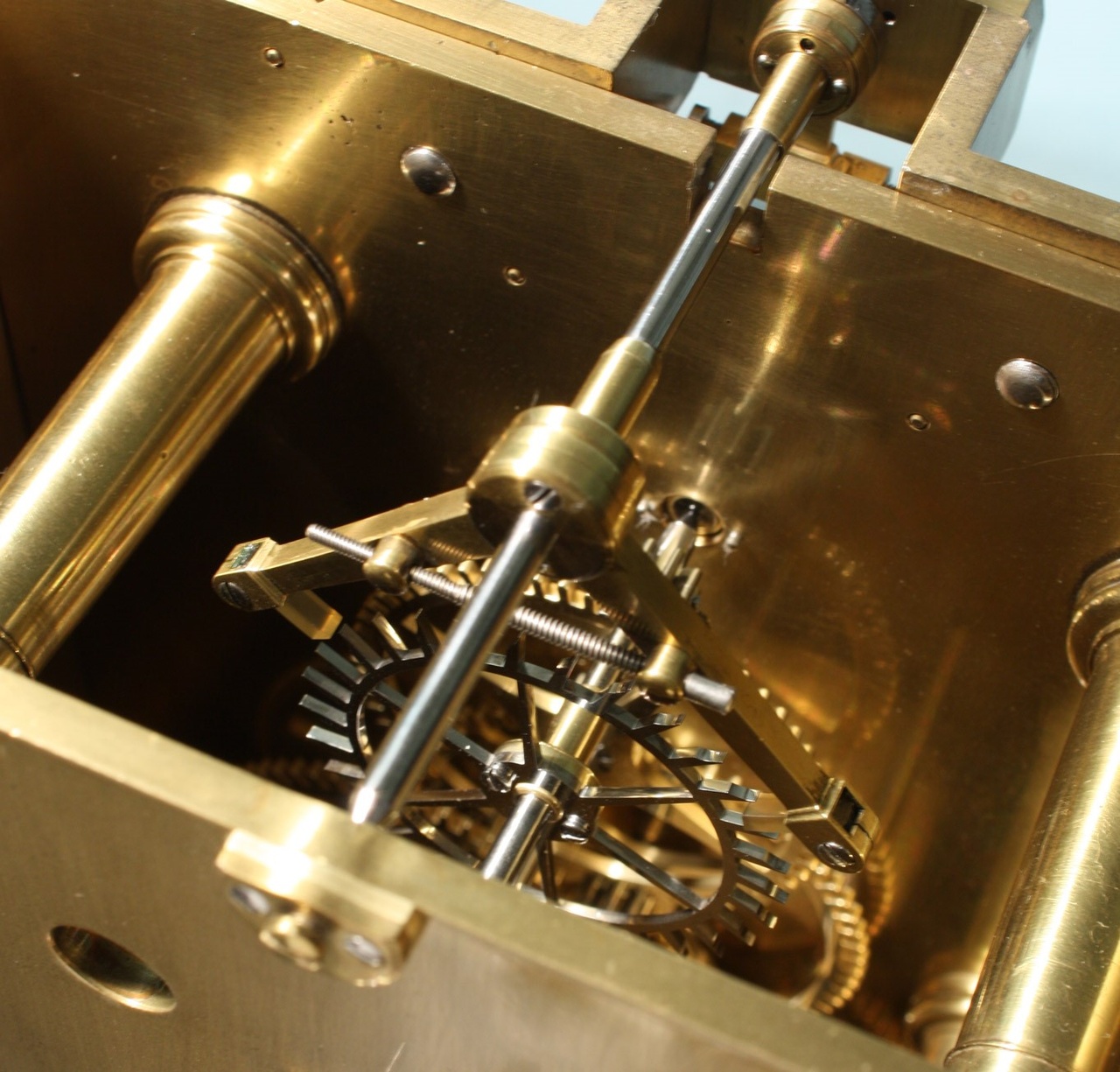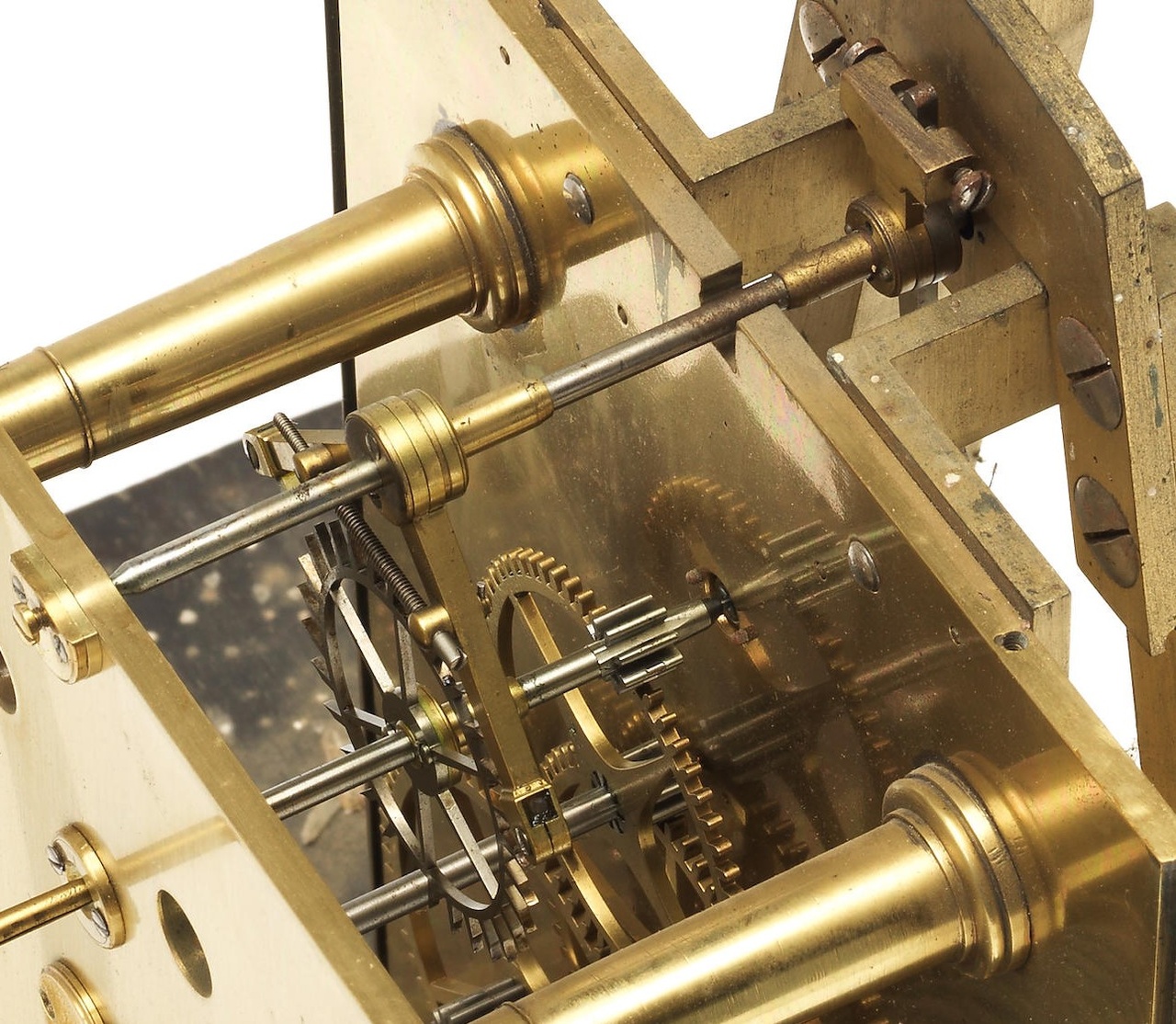 Платины механизма имеют 6 опор. Спуск - Deadbeat . Механизм завода часов с поддержание мощности на приводе. Также механизм снабжен собственной системой температурной компенсацией Ellicott. Рядом с маятником на механизме вертикально закреплен биметаллический стержень, верхний конец которого перемещает рычаг подвеса маятника вверх или вниз в зависимости от изменения температуры окружающей среды. Запас хода 8 дней.