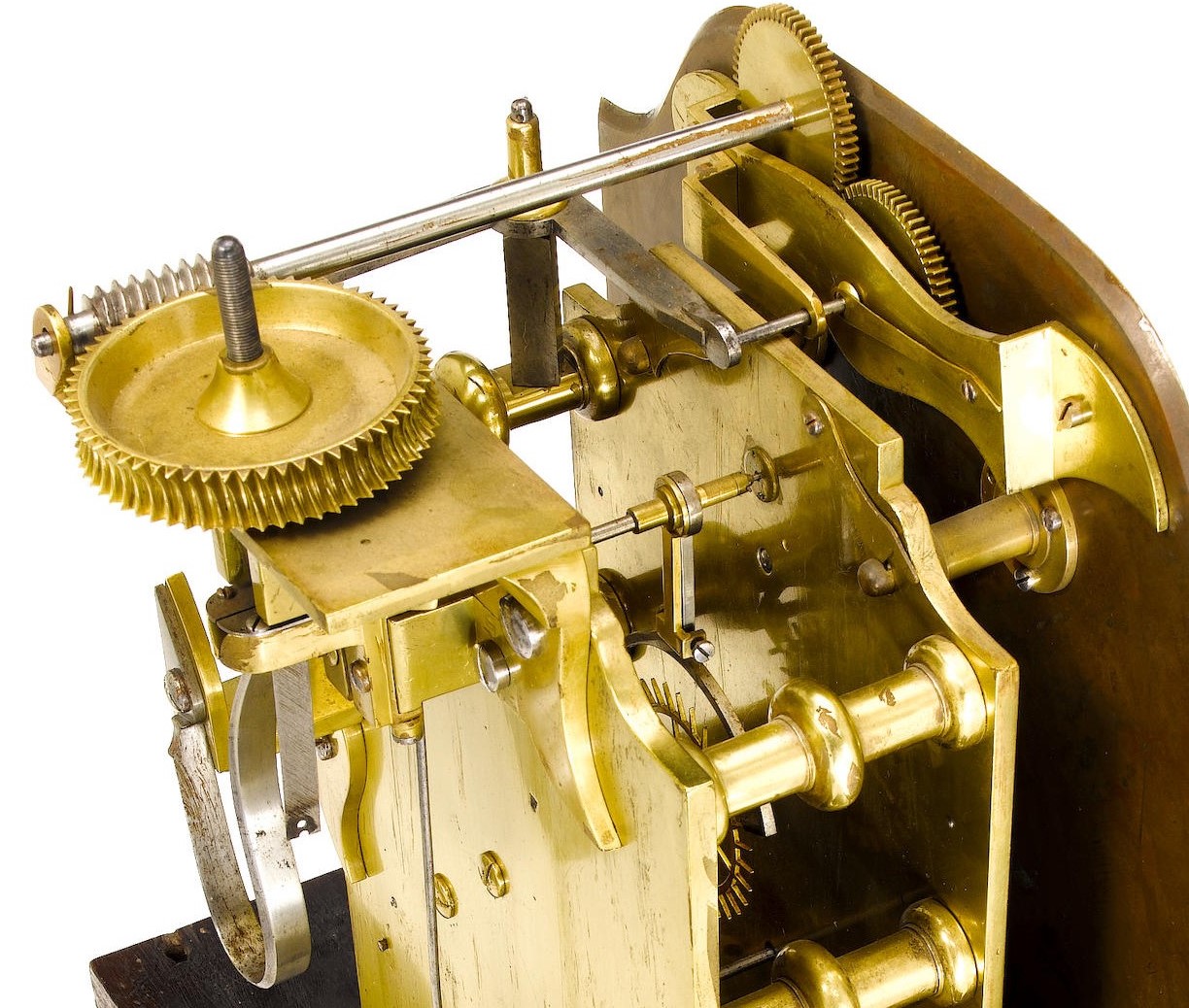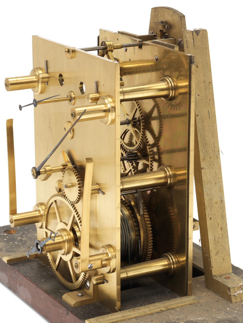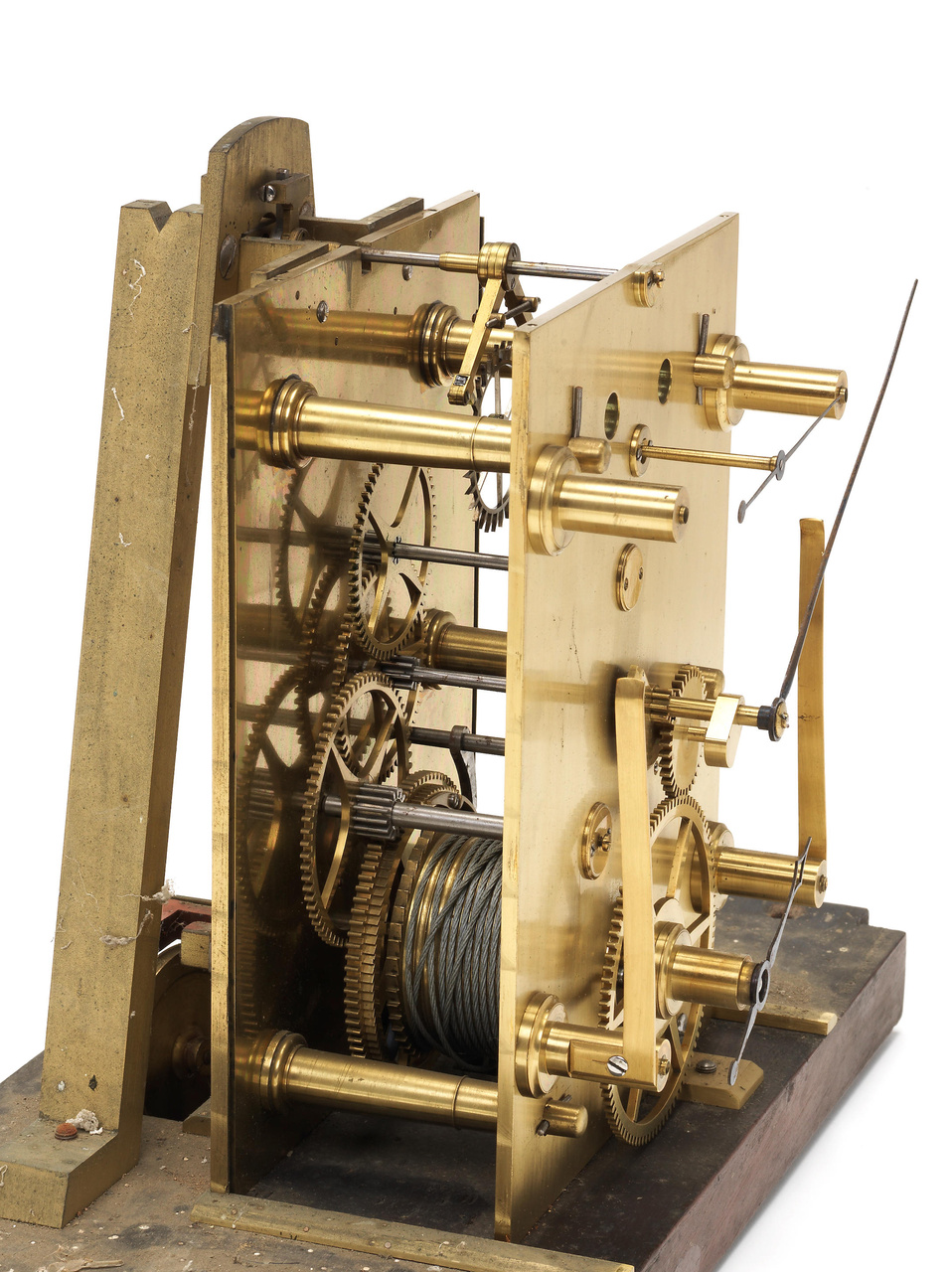 Платины механизма имеют 6 опор. Спуск - Deadbeat . Механизм завода часов с поддержание мощности на приводе. Также механизм снабжен собственной системой температурной компенсацией Ellicott. Рядом с маятником на механизме вертикально закреплен биметаллический стержень, верхний конец которого перемещает рычаг подвеса маятника вверх или вниз в зависимости от изменения температуры окружающей среды. Запас хода 8 дней.