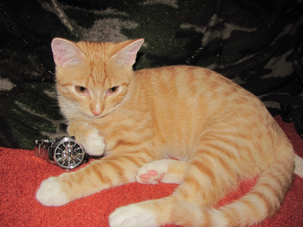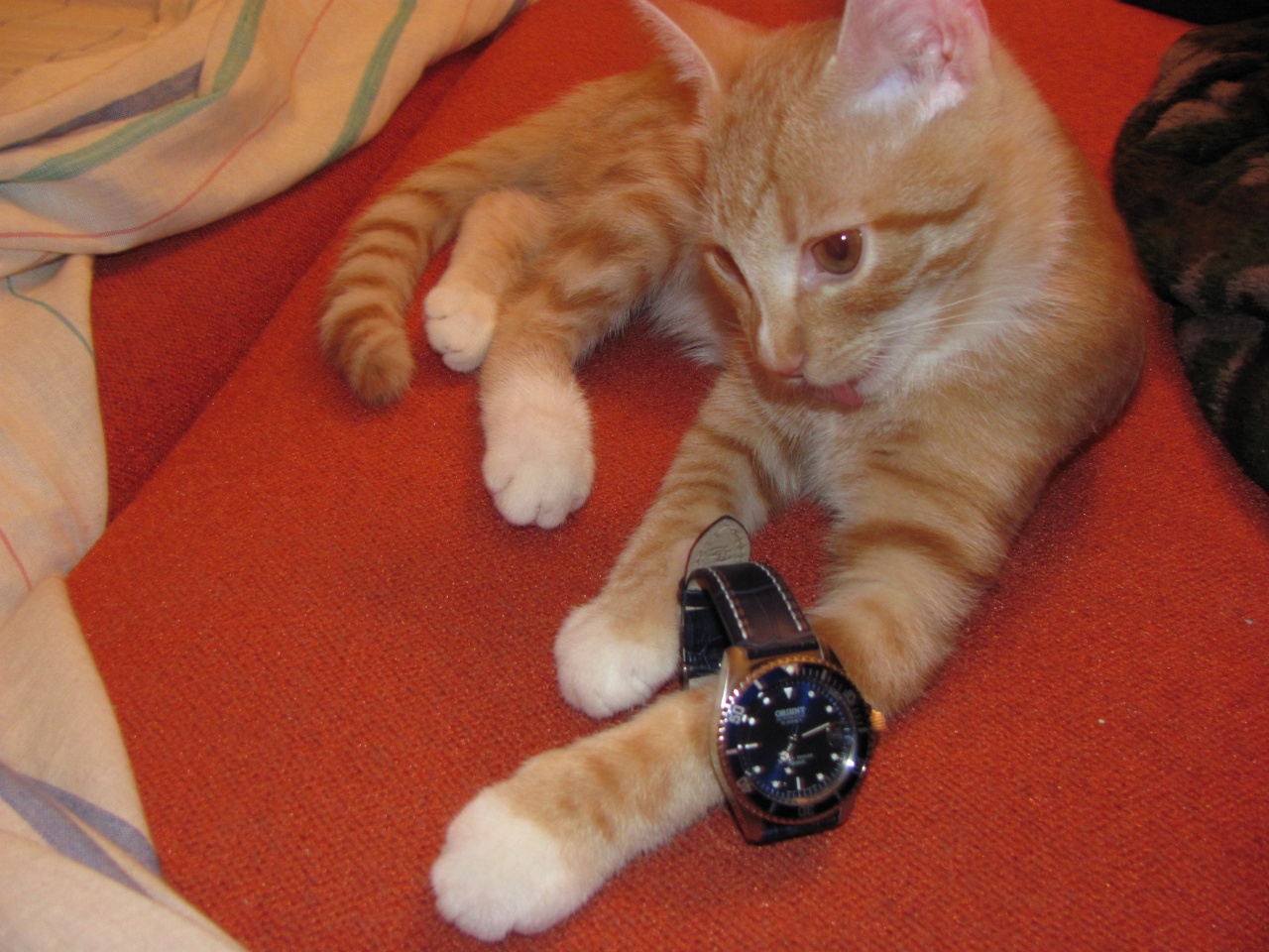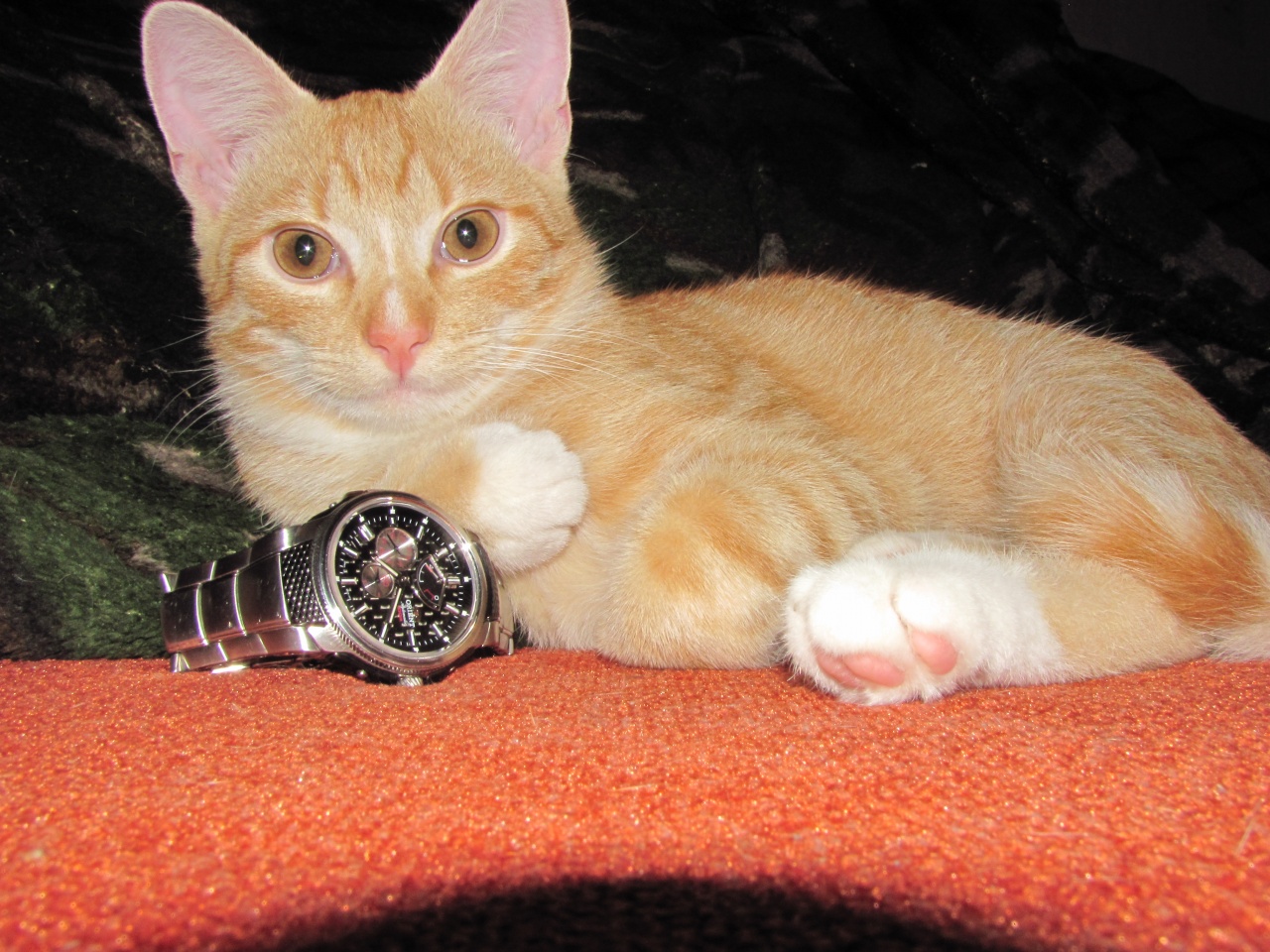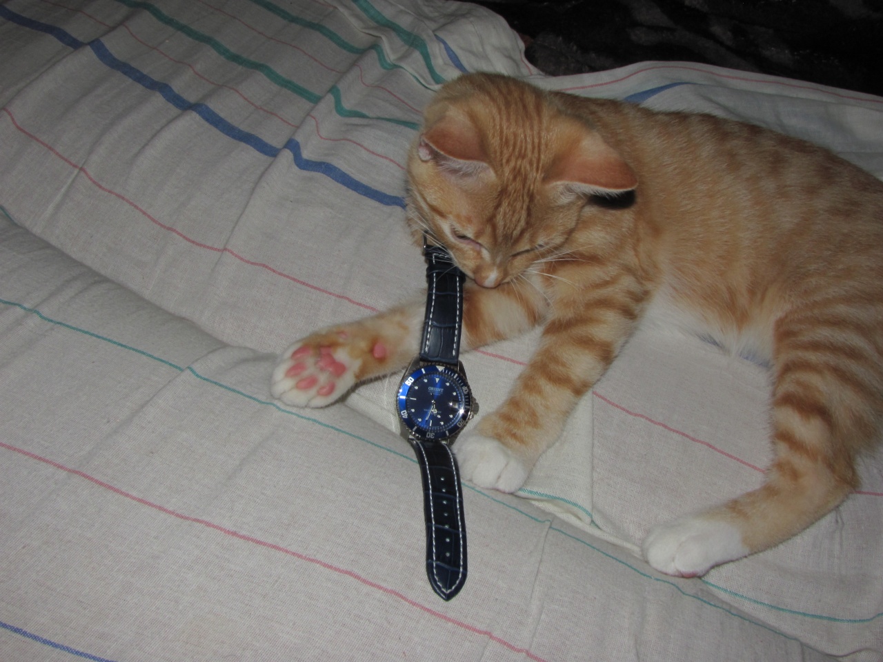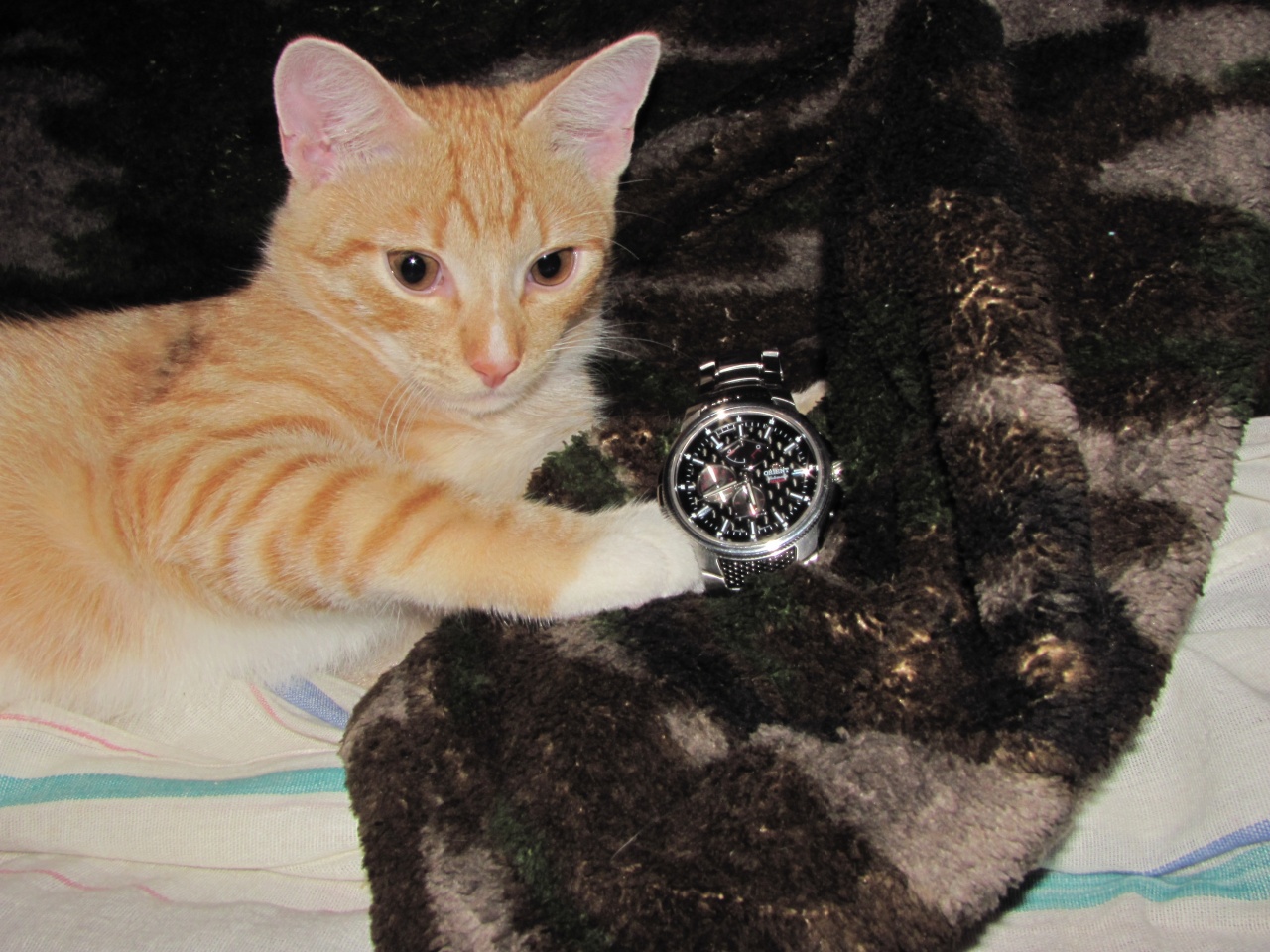 А котэ ( у ТС ) и впрямь зачетный. Моя кошара к часам увы, равнодушна ...