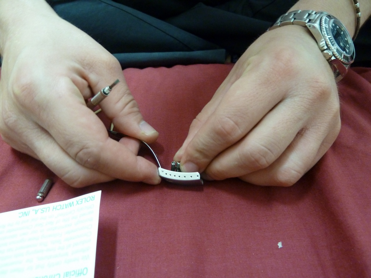 (робко пищит) а можно вопрос с галерки? а зачем мастер снимал браслет с корпуса? там же съемные звенья, чтобы браслет уменьшить, около застежки.... Нет?