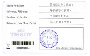 Тут и карточка гарантийная есть со схожей стилистикой почерка, и сравнение её с оригинальной. Во вложении - оригинальная карточка оригинального китайского представительства Тиссо. Цветовая гамма аналогична гамме карточек из московских официальных магазинов... и китайских интернет-магазинов... на их сайтах. По факту из Китая приходит то, что сейчас продаётся в Ярославле. Надпись "T+ TISSOT" более яркая, жирная и напечатанная не той матрицей.
