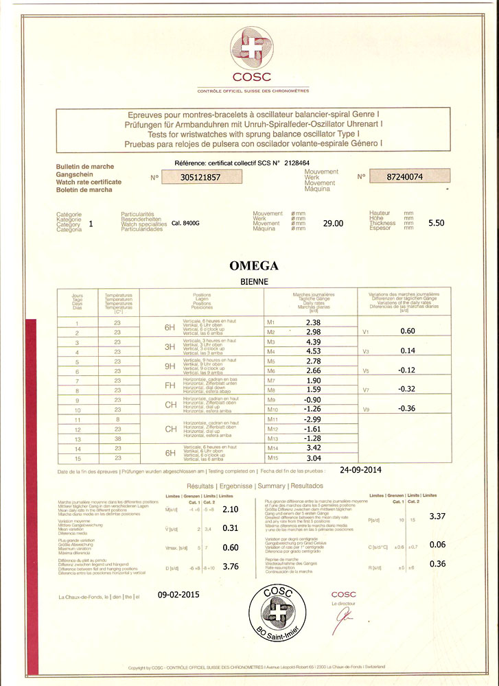 Сертификат COSC на Omega cal. 8500 - Страница 20 - Часовой форум Watch.ru
