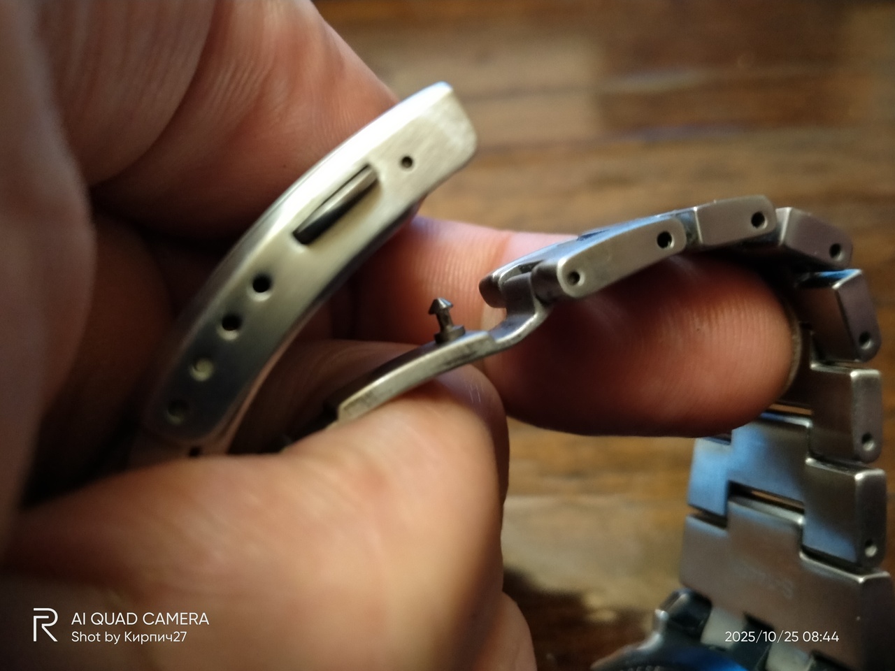 Весной приобрёл себе уже вторые пятитысячные и только недавно (сидя на фаянсовом друге), случайно обратил внимание на великоватую ступеньку между застёжкой и браслетом, люфты и бренчание в целом. Зная о педантичности японцев даже в мелочах был неприятно удивлён - данный косяк обусловлен излишне большой высотой фиксирующего грибка (гвоздика). Мерительным инструментом я не пользовался, но на глаз его шляпка выше необходимого примерно на 0,6-0,7 мм. Для изделия подобного рода это чрезвычайно много и я посчитал сей вопиющий факт недопустимым. Фото, как оно было изначально сам не делал, а натискал с Интернета: