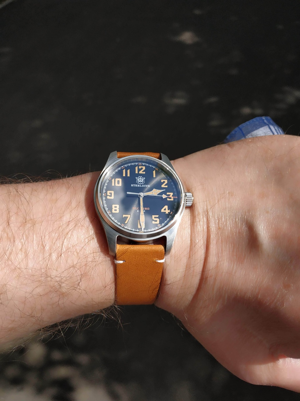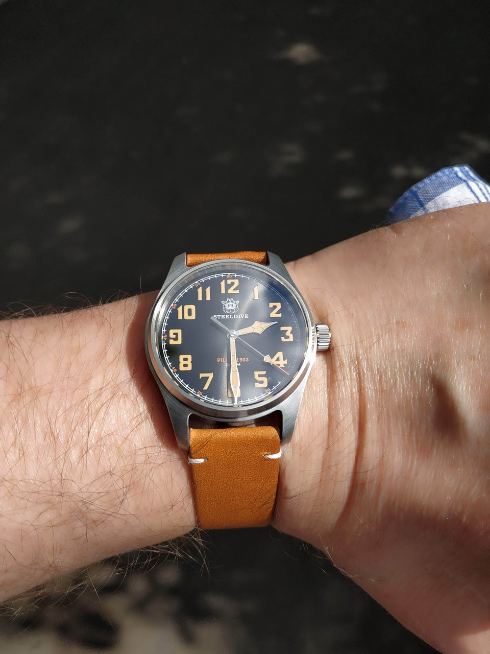 Приехал, наконец пилот на "правильном" VH31. В этот раз выбрал ремень красно-коричневый, так он оказался на детскую руку и толщиной почти 5 мм, в общем - шляпа. А сами часики радуют. А первые, на VH42, отнёс другу ( и ремень на них тот поставил, у него запястье узкое), тот прям обрадовался.