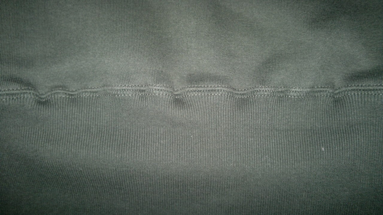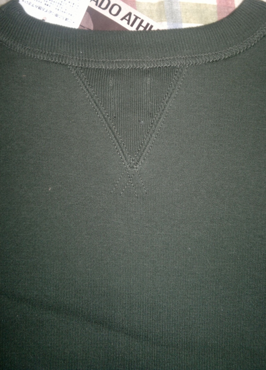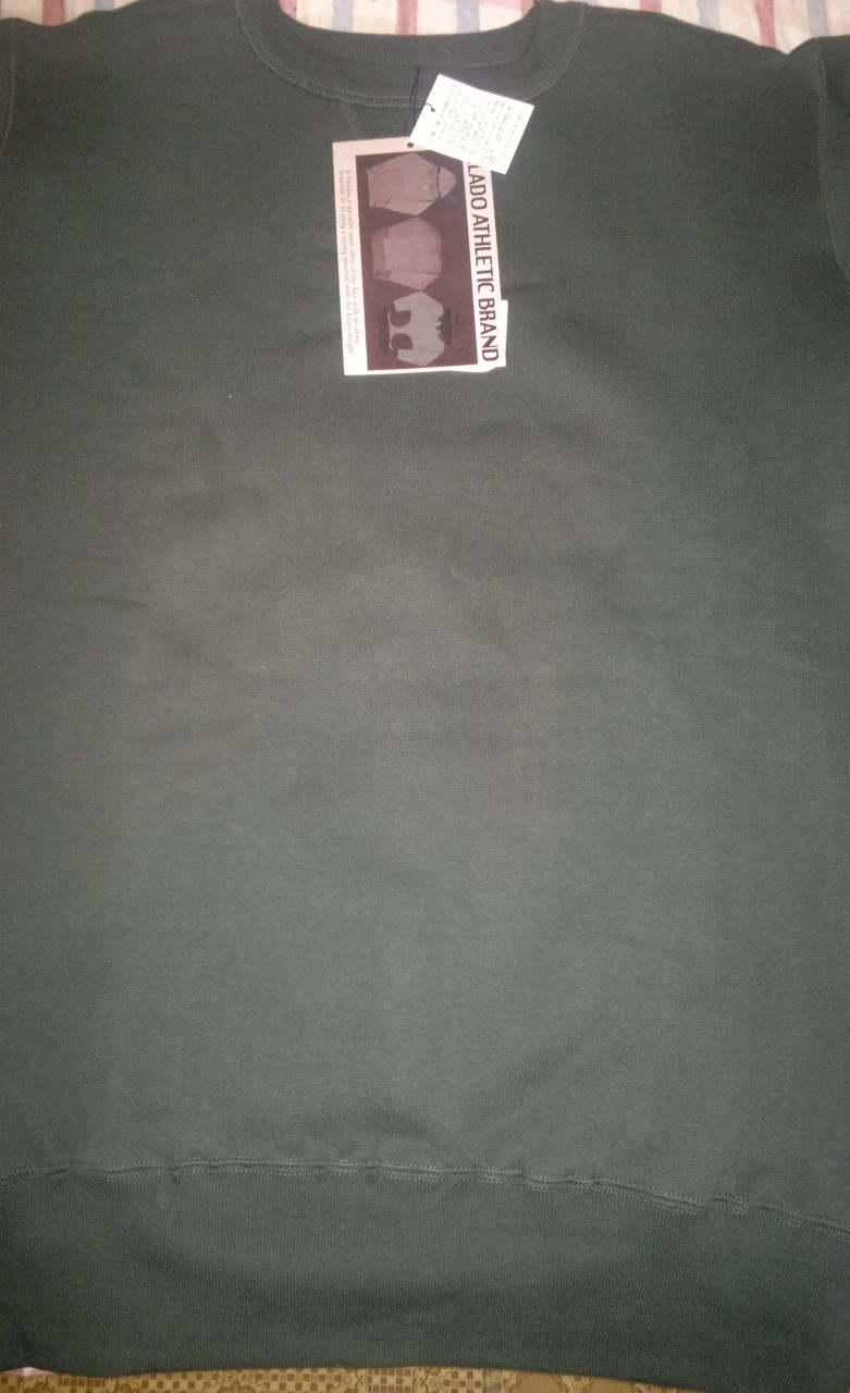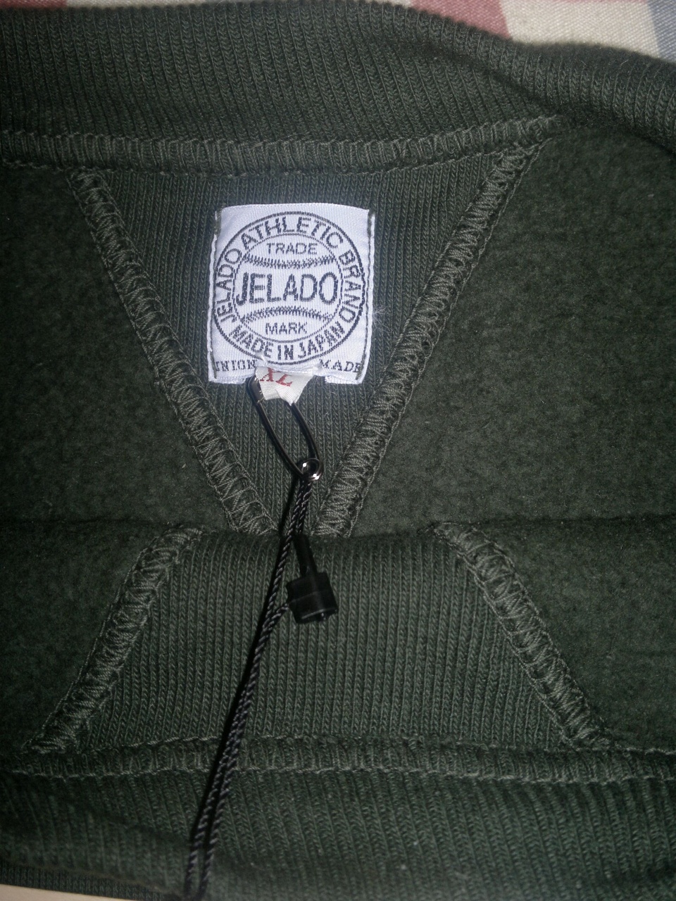 Средняя посадка ,горловина без значительного выреза- наследие 1950-х. Не маломерит. Текстура материала достаточно ровная , характерная для loopwheel. Материал безупречен. Прямые рукава оканчиваются длинными манжетами с резинкой. Низ- широкая, плотная трикотажная резинка. Абсолютно ровные швы обработаны оверлоком .Никаких торчащих ниток. V-образная вставка спереди и сзади предохраняет горловину от растягивания. С внутренней стороны этикетка с логотипом марки .На груди присутствует наклейка (она легко удаляется) с названием марки и указанием состава ткани: 100% хлопок. На рукаве картонная этикетка Jelado Athletiks в стиле 50-х годов. Упакован в фабричный пакет.