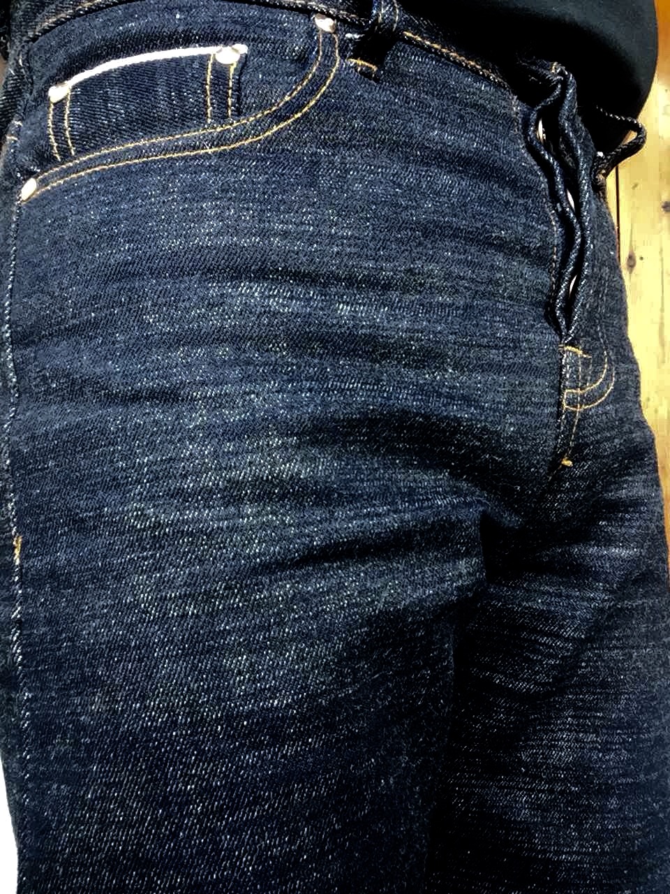 Деним, конечно, очень интересный и необычный. Присутствуют мощные горизонтальные непорядки, придающие дениму бомбезную неповторимую брутальный слабби структуру . Если брать за эталон дерюжный деним моих брендовых SG 7104, то структура этого денима фактически аналогична , за исключением наличия твистед твилла !