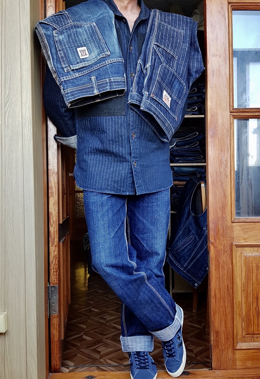 У Экстра XX001 бедро узким я бы не назвал. У них достаточно плотно в верхней части топ-блока, там, где пояс, кокетка. И то весьма относительно, бывают джинсы и с более плотной верхней частью. А вот ниже кокетки (в районе хипс) есть приятное моему глазу расширение, в стиле Eternal 811, Full Count 1108XX и подобных моделей, там уже плотного прилегания денима к телу нет, а имеется легкий намек на мешковатость, а для кого-то и полноценный "мешок", что весьма мне импонирует в эти дни. В общем, все близко к классике, считаю. Плюс, думаю, у BJ будут и последующие подвижки в сторону усадки, потому не стал рубить инсим окончательно)