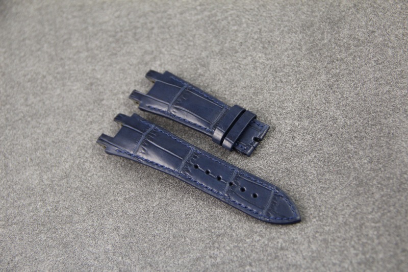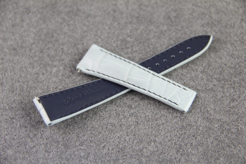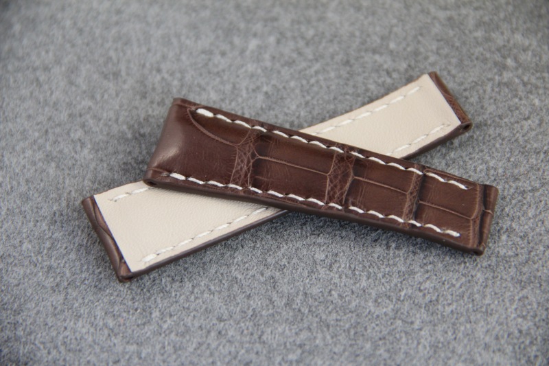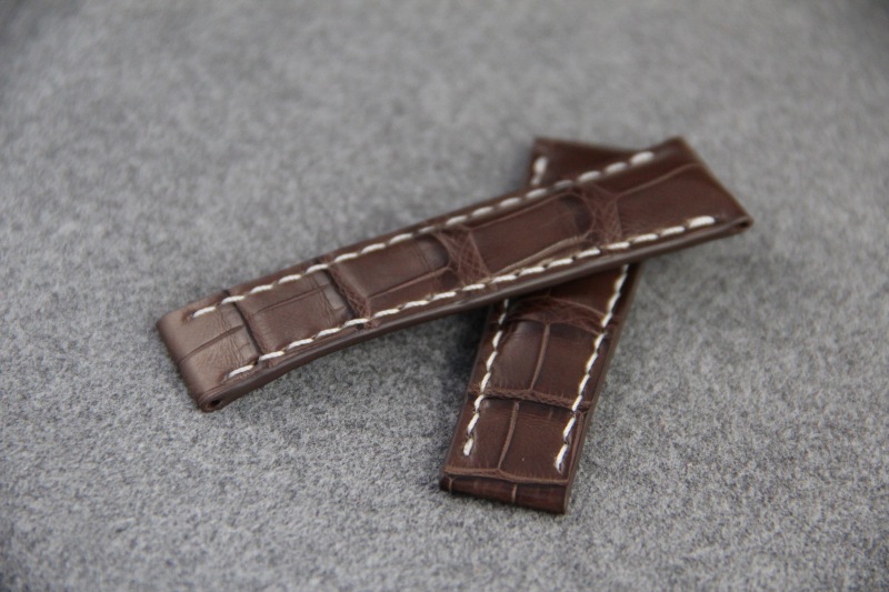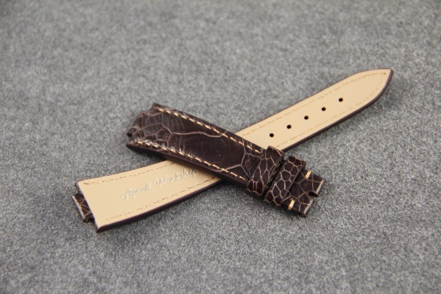 Ремешок для часов Omega. Верх ремешка сделан из кожи аллигатора. Подкладка ремешка из кожи теленка. Ремешок прошит вручную.