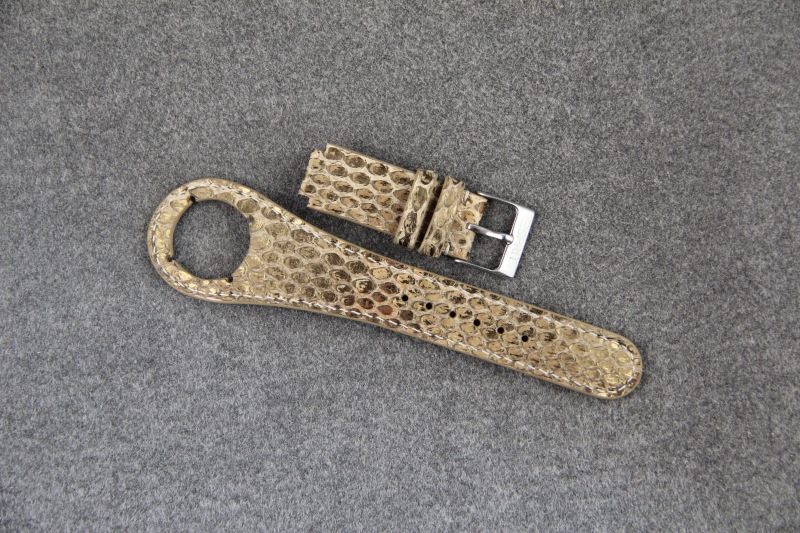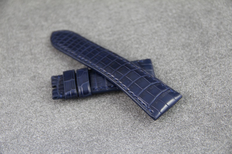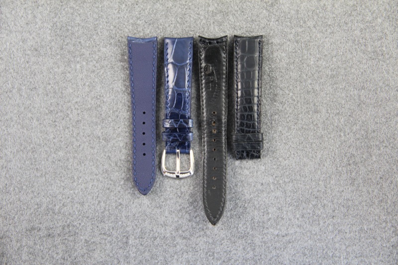 Ремешок для часов из кожи крокодила. Верх ремешка сделан из кожи крокодила. Подкладка ремешка из кожи теленка. Ремешок прошит вручную.