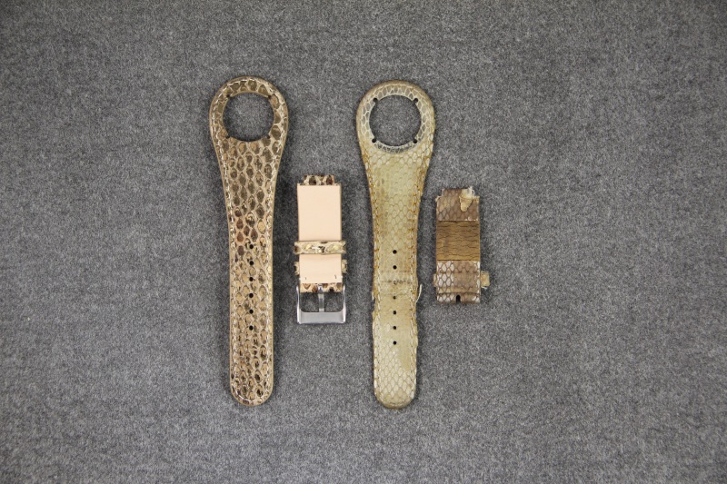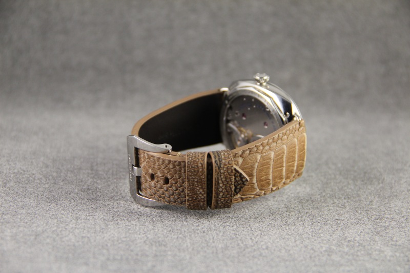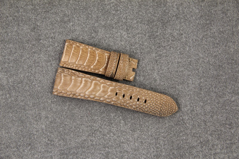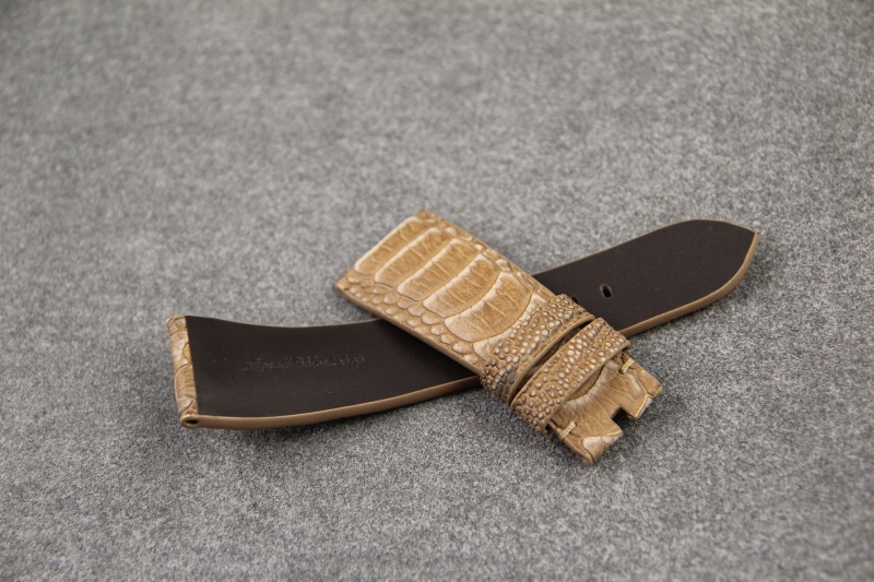 Ремешок для часов Raymond Weil. Верх ремешка сделан из кожи с ноги страуса. Подкладка ремешка из кожи теленка. Ремешок прошит вручную.