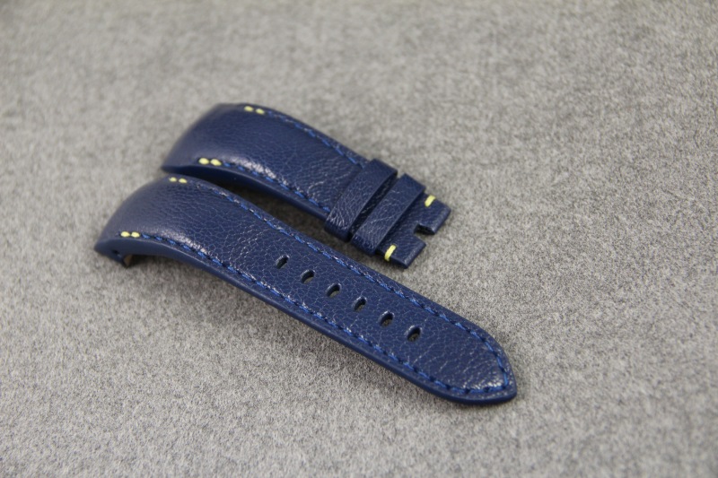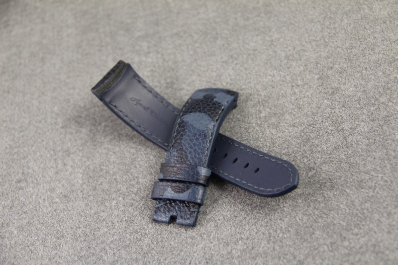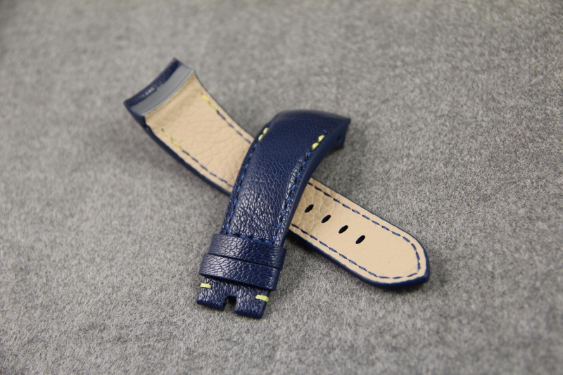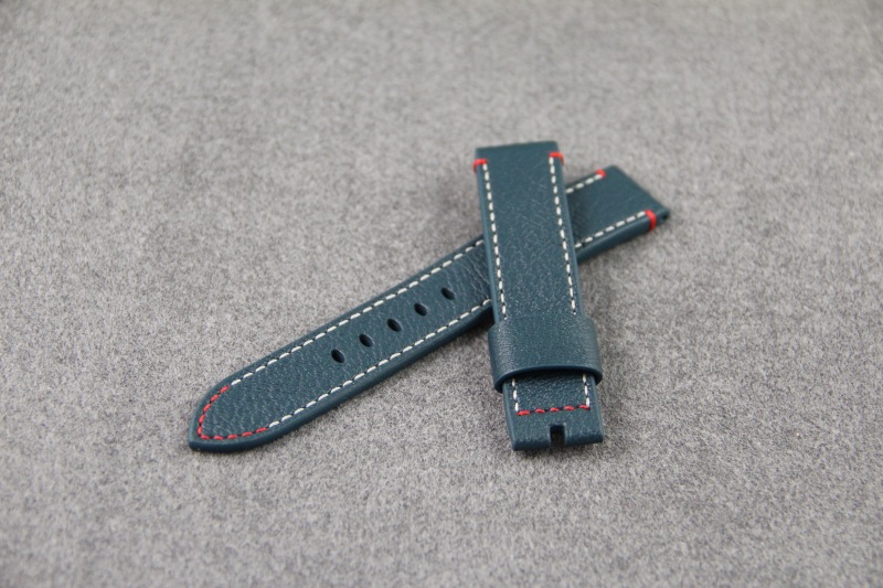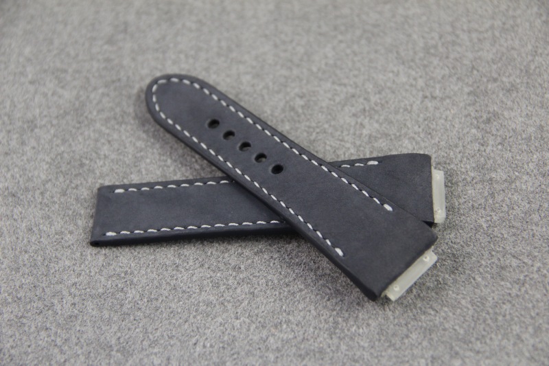 Ремешок для часов Breitling Avenger BlackBird. Верх ремешка сделан из кожи теленка. Подкладка ремешка из кожи козы. Ремешок прошит вручную.