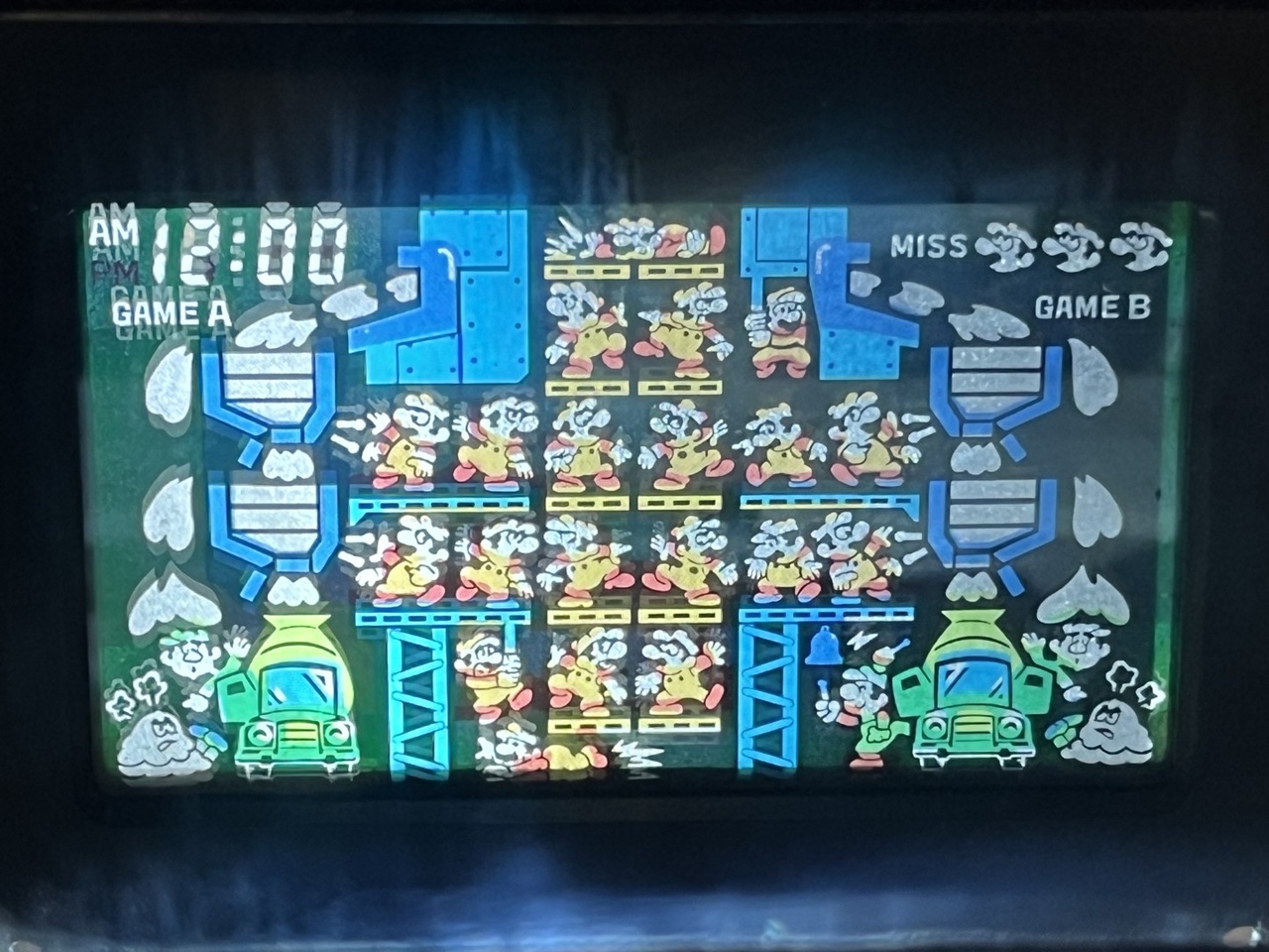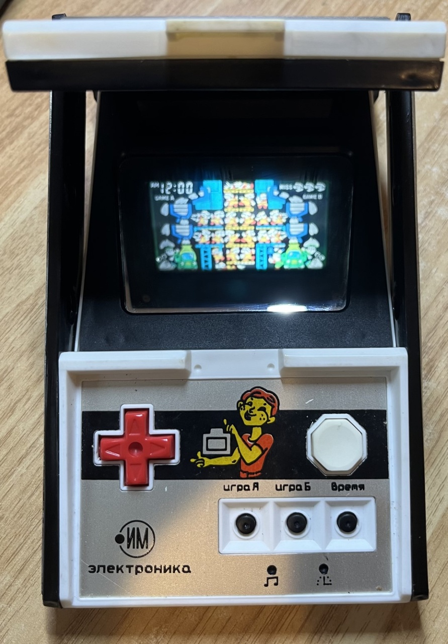 Так что вскоре у меня оказалась плата, то очень захотелось восстановить и работающую игру. Вот только второго чуда не случилось и ЖКИ к игре найти так и не удалось. Но так как ЖКИ судя по иллюстрации отличается от оригинала только локализованными надписями, то я решил взять в качестве донора ЖКИ от Нинтендо и собрать все вместе ... и все заработало!