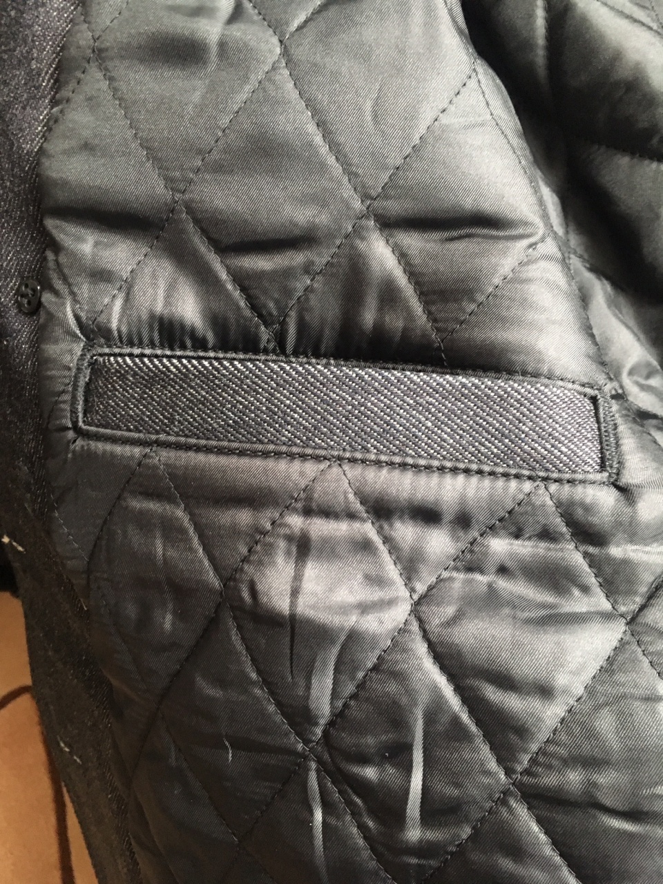Подкладка стеганая, на синтепоне наверно, в рукавах тоже самое. Еще в рукавах трикотажные манжеты, Карманов 4 штуки, все с красной кромкой и выполнены из фиолетового вельвета, ну и т.д.