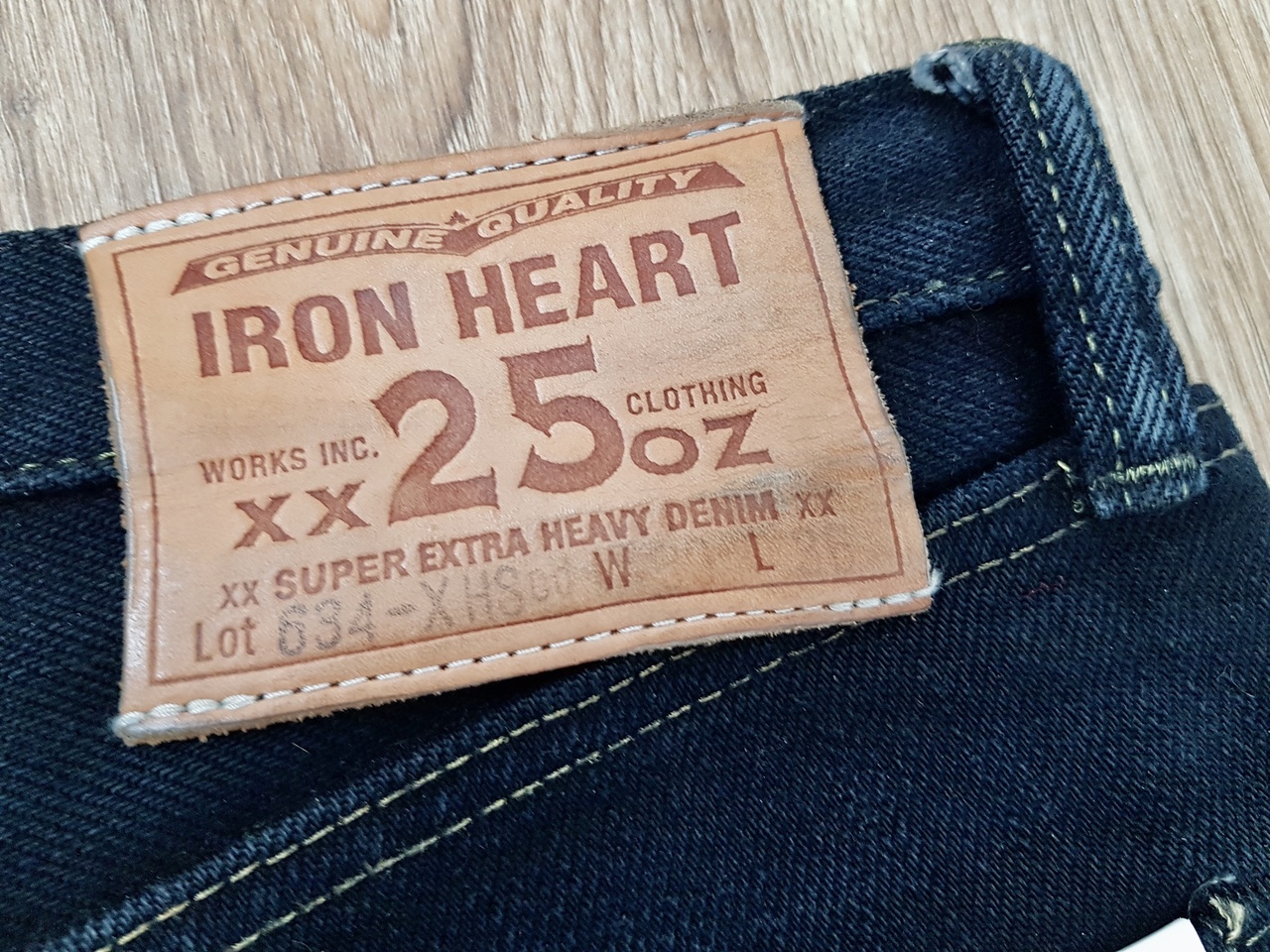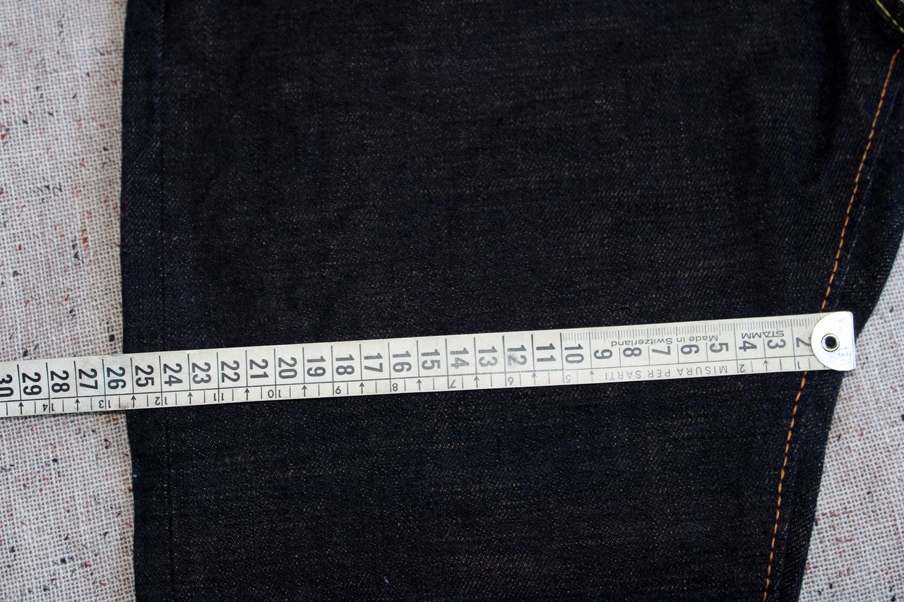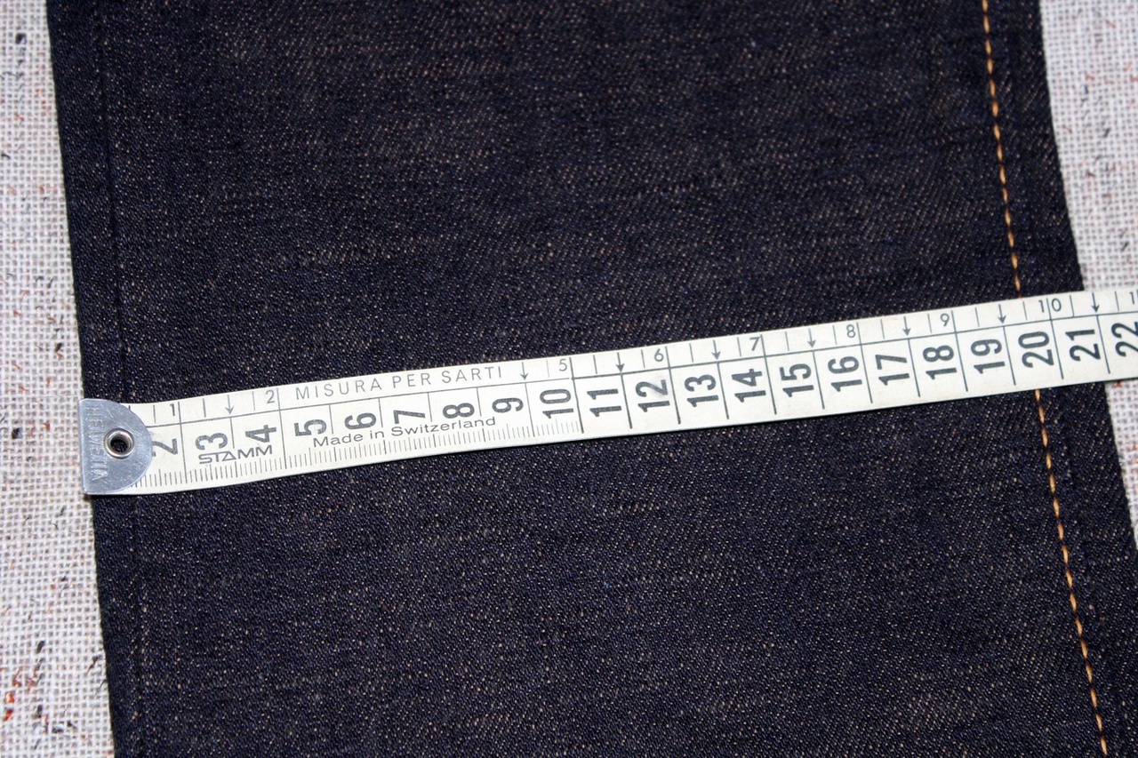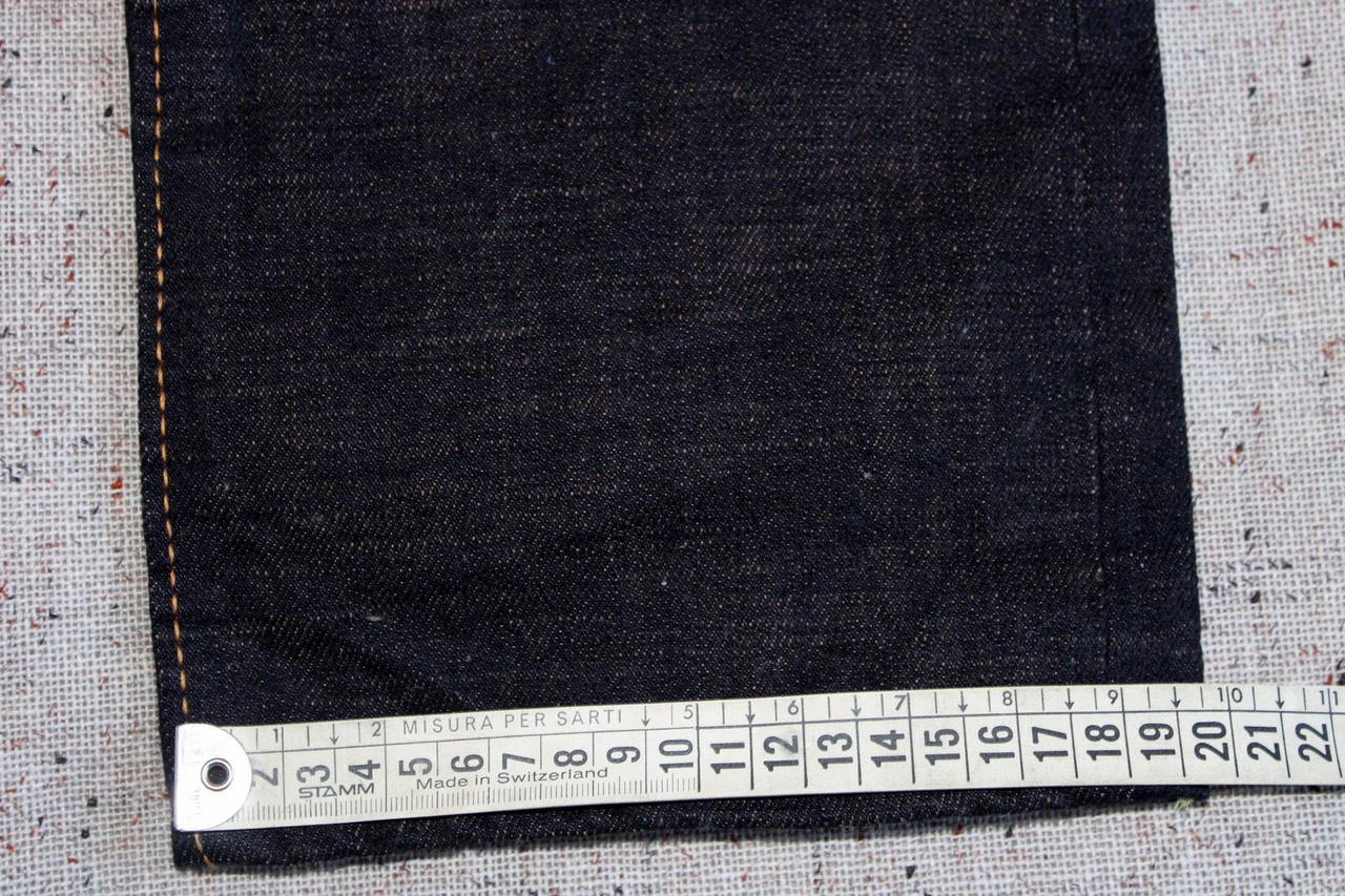 С денимом тоже всё хорошо. Это тот самый густой тёмный индиго с едва проглядывающимся утком. Умеренно пушистый (но он будет ещё раскрываться, мои старые 47-е мохрились сильней), слегка фактурный.