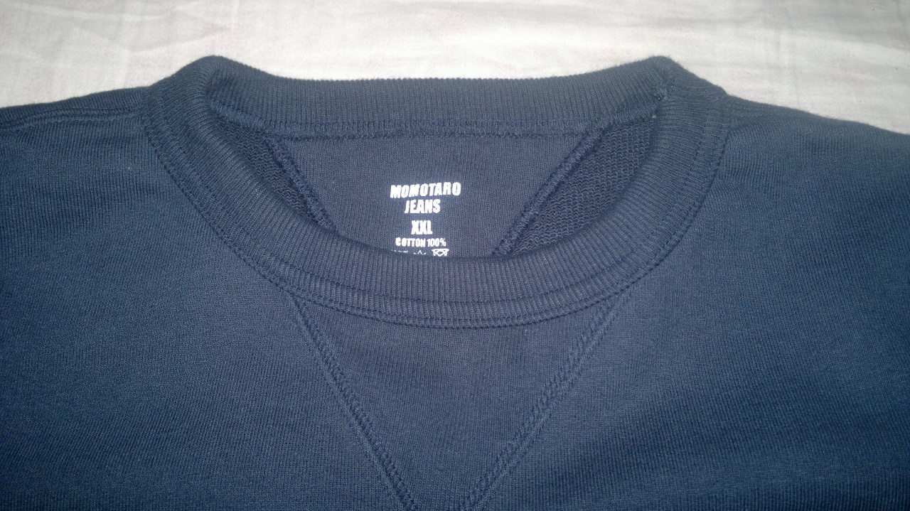 Ниже пристутсвует V-образный элемент. Обратите внимание, что это не просто строчка на петельной машине для красоты и придания некоторого "винтажного" шарма вещи. В этой части свитшот хорошо тянется, что очень удобно для посадки по различным типам фигур. Что касается истории, то насчёт этого элемента есть разные версии. Встречается информация, что эта деталь изначально имела назначение для отведения пота во время тренировок и удобства снимания-надевания вещи. Встречается также информация, что благодаря эластичности свитшота в районе плечевого пояса, было удобно надевать вниз защиту для американского футбола на тренировку.