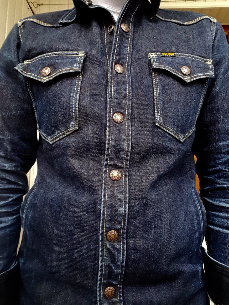 Цвет довольно красивый, в котором присутствуют различные оттенки индиго. Не так быстро, как джины, но цвет с течением времени будет постепенно меняться, в районе швов будут проявляться более светлые потёртости. В то же время не стоит думать, что такая вещь тут же окрасит вас в цвет индиго.