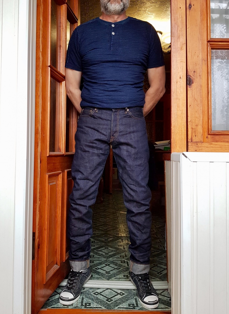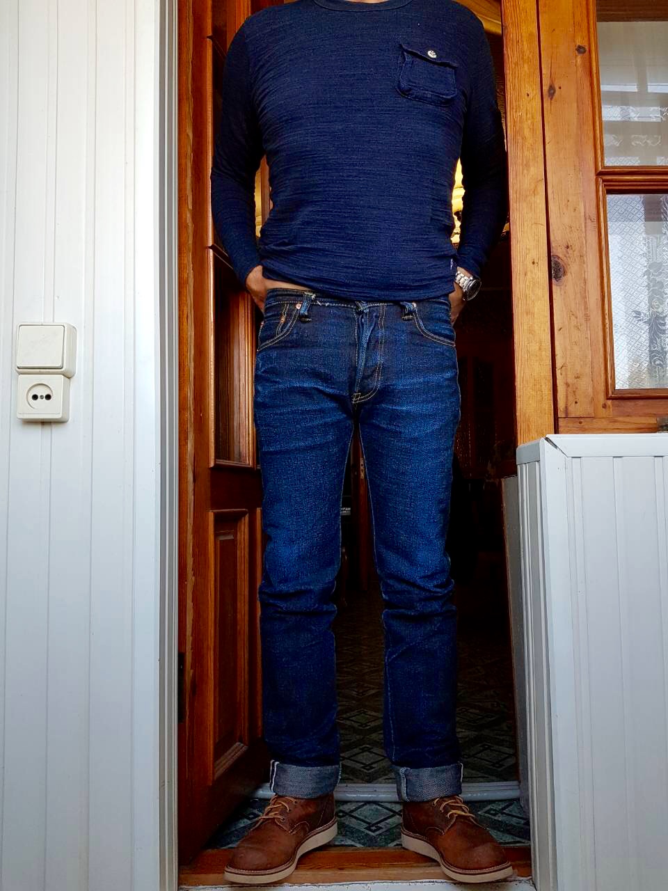 После второго замачивания, кстати, начал в отдельных местах проявляться красивый фейд, и вообще фактура этого денима мне очень нравится. Даже не знаю, как так получилось, что это всего вторые штаны с сэлвиджем у меня оказались такими специфическими ). Кстати, на картинке в Денимио они выглядели убого ) Не помню, где я вообще узнала о сущещствовании такой модели. Может быть даже в этом форуме.