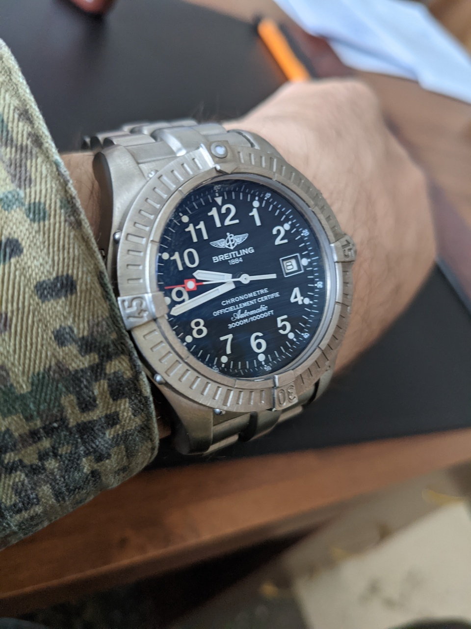 Есть - Rolex (Submariner Date, Yacht-master), Cartier Santos , Breitling Super Chronomat, Omega Seamaster Diver 300M, Panerai (01351, 01229, 00346, 00233, 00998, 001316) Были - Omega Seamaster 300M, Rolex (Turn-O-Graph, Hulk, Submariner No Date, Datejust 41) , Breitling (Superocean Heritage 46 & 42, Superocean Heritage II 42, Chronomat Evolution, Chronomat 41,42,44, Superocean Heritage II хронограф, Navitimer ), Cartier Santos 100 XL , Breguet Marine Big Date, Zenith Pilot Bronze, Panerai (00312, 01392, 00927, 00795, 01321, 01316, 00572, 00723, 00268)