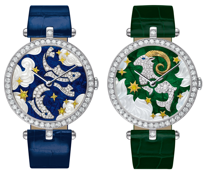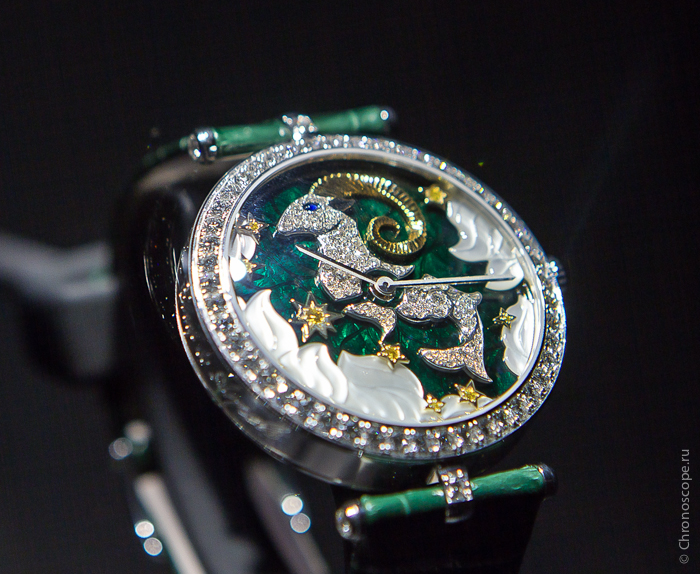 И, наконец, самая обширная коллекция — Lady Arpels Zodiac, посвященная знакам зодиака. В оформлении циферблатов мастера компании прибегали к искусству гравировки, украшали их эмалью, резным перламутром и драгоценными камнями.