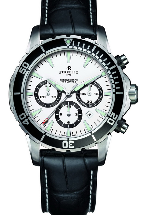 20 сентября 1827 года он запатентовал первый хронограф со вспомогательной стрелкой (сплит-хронограф) – эти революционные часы Perrelet принесли ему Золотую Медаль Академии Наук в 1830 году. В в1834 году, часы, изготовленные для выставки, приносят ему наивысшие почести – в дань его таланту и его заслугам он посвящается в Рыцари почетного легиона.