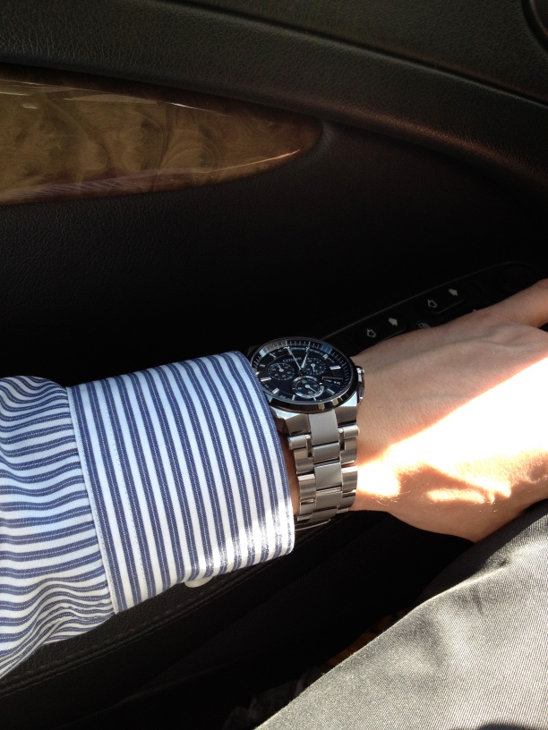 Спасибо. Вот первая фотка (на мобильник) в интерьере, иллюстрирующая полное несочетание с этим самым интерьером. Часы, как бы понятнее сказать, граненые, так что далеко не к любой одежде они подойдут. Тут вот несоответствие просто глаз режет. Я думаю, они хороши будут с черного цвета куртками и рубашками. С пиджаком из шерсти несколько чужеродно смотрятся. Вообще очень обязывающие они, чего я не ожидал от ширпотребной марки. С этим не оденешь, то не подходит, машина видите ли, не та. Пока я не совсем понимаю, как к этому относиться, но диссонанс с большинством моих вещей чувствуется.
