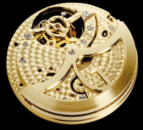 Циферблат, состоящий из двух наложенных друг на друга золотых пластин, приковывает взгляд неожиданным зрелищем солнечного затмения. Над фоном из черного лака и минутной «дорожкой» расположено изображение светила, искусно выполненное в технике клуазонне. На черном лаке играют отблески света, бросаемые желтым золотом четырех выгравированных треугольников, выпуклых цифр ретроградного указателя часов и стрелок в стиле «dauphine». Особенностью турбийона, полюбоваться которым можно через восьмиугольное отверстие в положении «6 часов», является сапфировый мост, который придает ему сходство с турбийонами «парящего» типа. Специальное покрытие, защищающее его от действия ультрафиолетовых лучей и препятствующее высыханию смазки, увеличивает срок службы этого легендарного механизма.