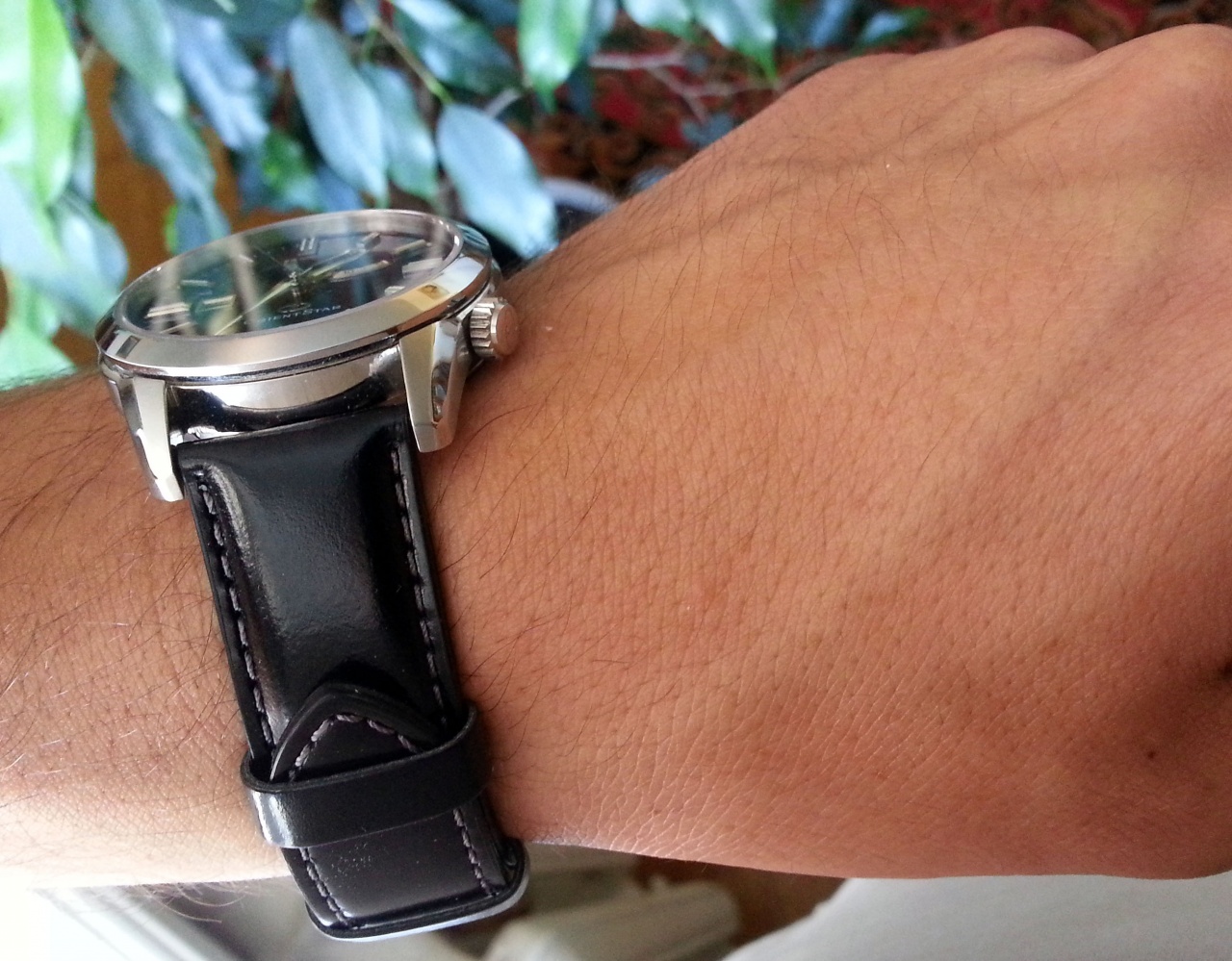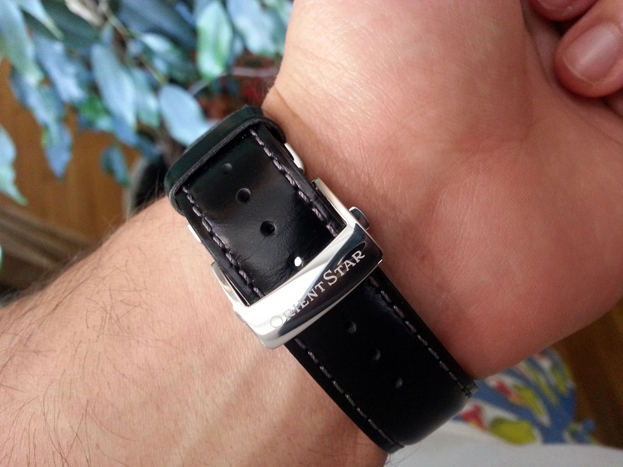 Вот и пришел мне ремень от Time G. Всё быстро, за неделю уже был тут. Обошелся в 111$ с доставкой. В этот раз доставили прямо на дом, по адресу. Поначалу расстроила длина ремня, но уже попривык. Зато качество и запах кожи сразу очень порадовали. Изначально одел неправильно (как сейчас думаю) застежкой на 12 часов, а после перестановки надпись Orient Star стала как надо. На руке сидят теперь очень плотно, но вполне комфортно.