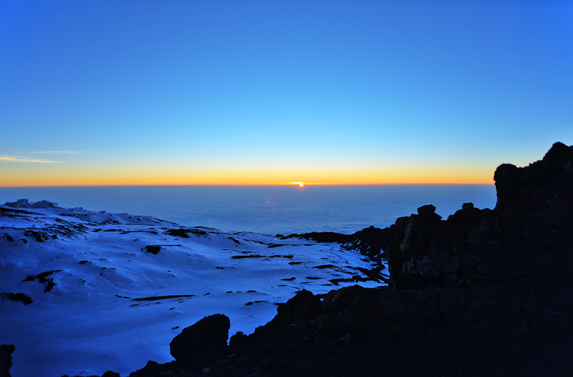 Как я уже писал, ложились спать мы около 21:00. А самый смак восхождения заключается в том, что надо бы встретить восход солнца на самой вершине. А восход - около 06:30 утра. Т.е. у нас оставалось 9,5 часов на сон и преодоление 1300 м (по высоте!). На сне, в общем, пришлось сэкономить - решили, что хватит 3 часов. Точно так же решили и все остальные, поэтому примерно в полночь лагерь зашуршал одеждой и рюкзаками