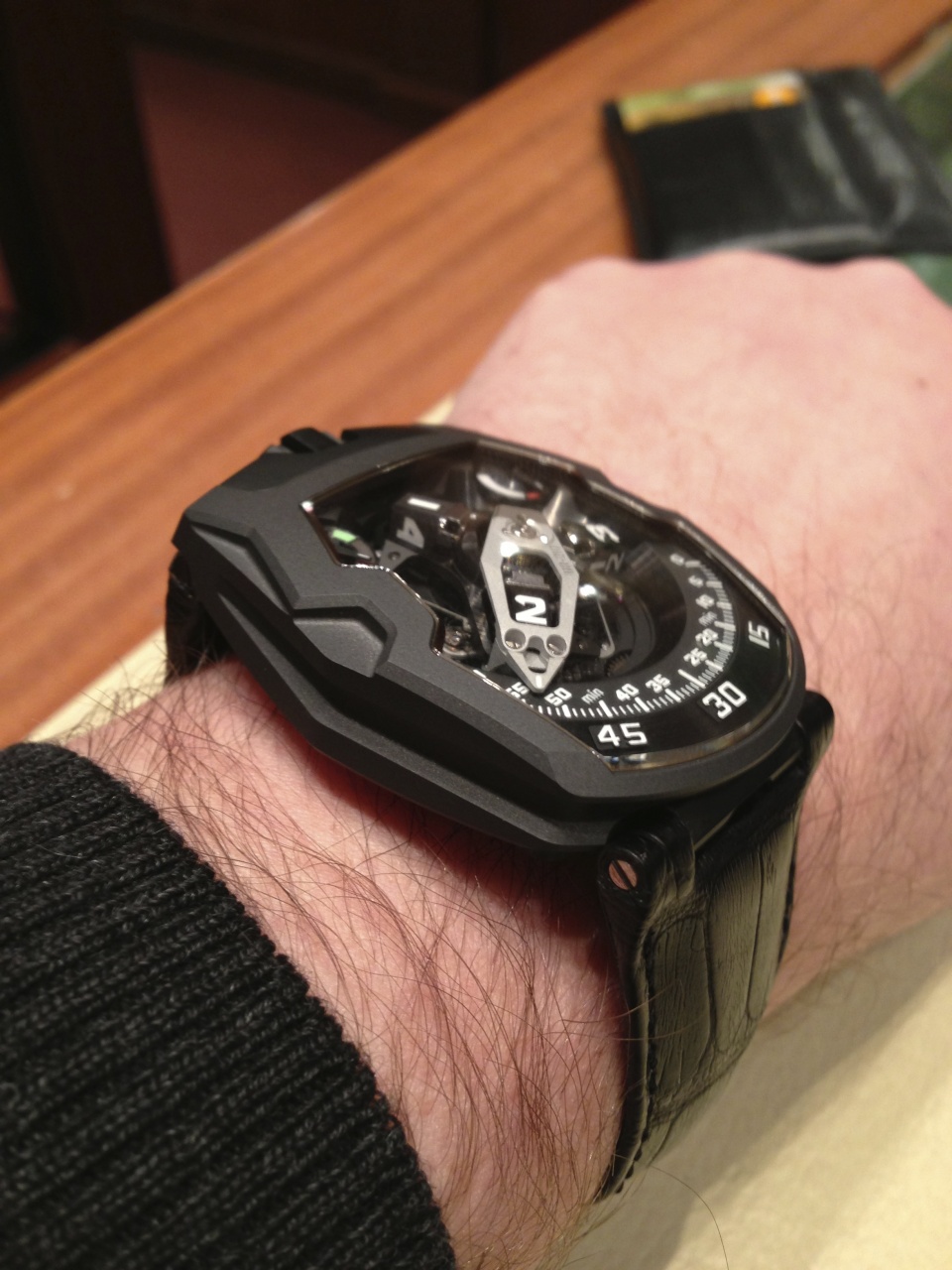 В общем купил я ему Urwerk UR-210-черненный титан, очень сильно они мне понравились...