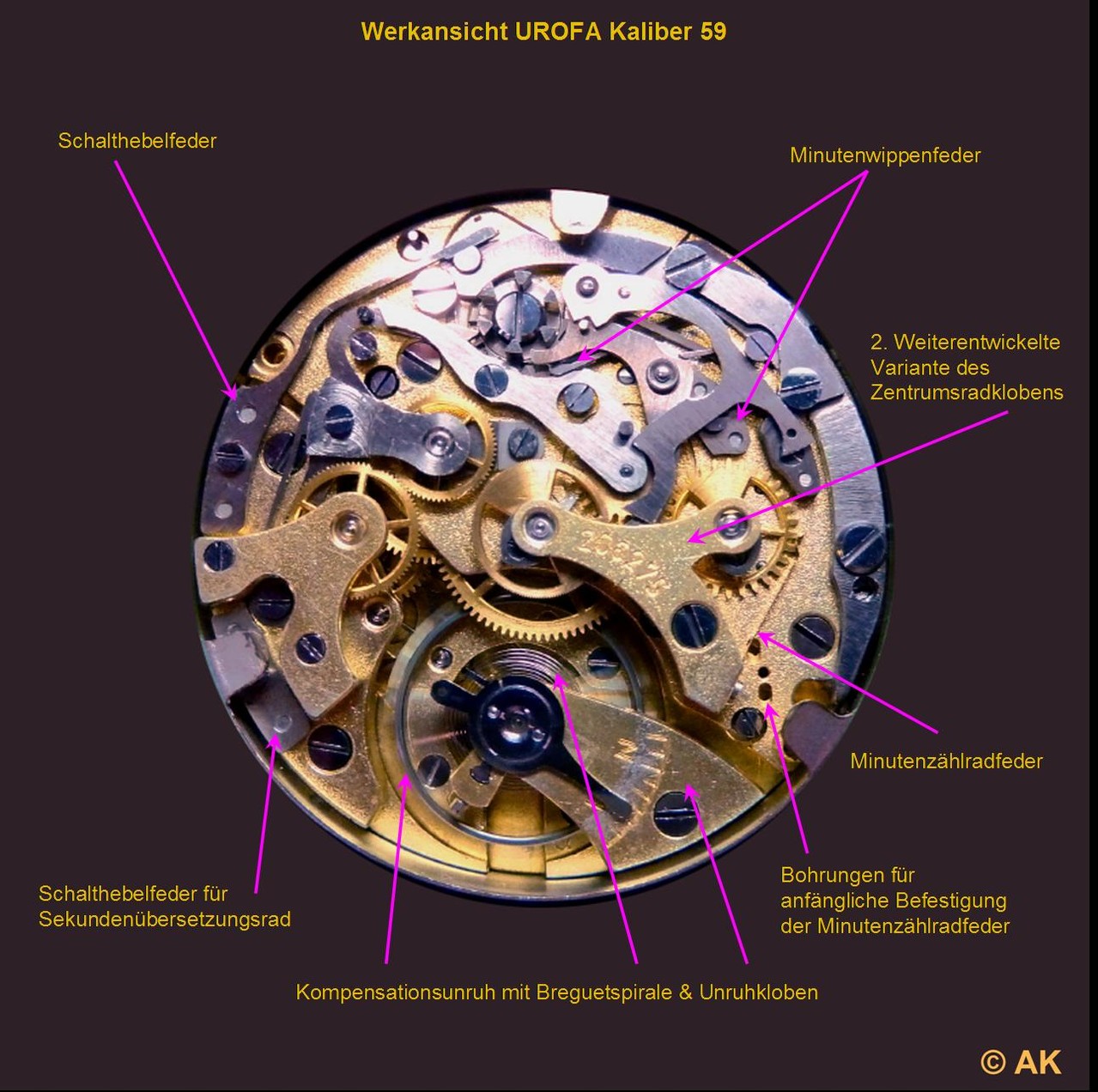В 1941 г. на калибре UROFA 59 было запущено производство легендарного хронографа Flieger Chronograph Glashutte под маркой Tutima, которое продолжалось до 1945 г. И даже слегка дольше, но уже в СССР на 1-м часовом заводе им.Кирова, куда в конце 45-го года было вывезено все оборудование UROFA в счет репараций. До сегодняшнего дня этот хронограф один из самых востребованных и дорогих на рынке. Сегодняшние цены на оригиналы периода 41-45 гг. начинаются от 7000 евро!