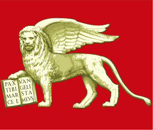 представляет из себя общий щит с гербами 4-х исторических Морских республик на территории современной Италии: