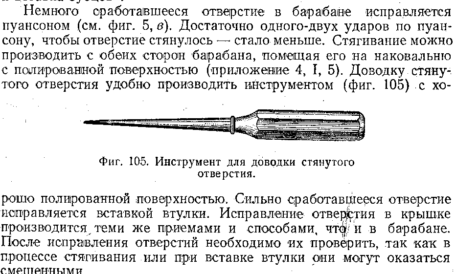 О чем-то подобном про доводку стянутого отверстия читал у Пинкина; жалко, что дома такого инструмента не оказалось, а шилом че-то побоялся делать, оно и не полированое, да и форма не идеально круглая.