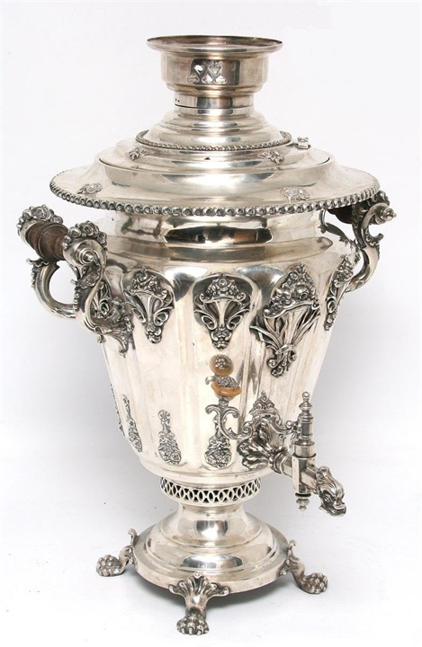 Первыми шагами возрождающегося русского национального искусства, зачинателем и носителем которого стала Москва и ее школа, было возрождение характерных декоративных принципов, присущих древнерусскому искусству. Яркими выразителями этого направления были лучшие фирмы П. Овчинникова и И. Хлебникова, которые, как бы изумившись красоте русского искусства, забы- 63 того и закрытого подражанием западноевропейским формам почти на два столетия, сумели вновь утвердить его в своих изделиях.