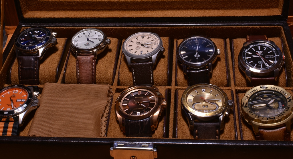 Japan: Seiko Sumo Chronograph / Citizen Nighthawk Radio Controlled / Seiko Sportura Chronograph Swiss: Hamilton Khaki Air Race Chronograph / Victorinox Ambassador Automatic