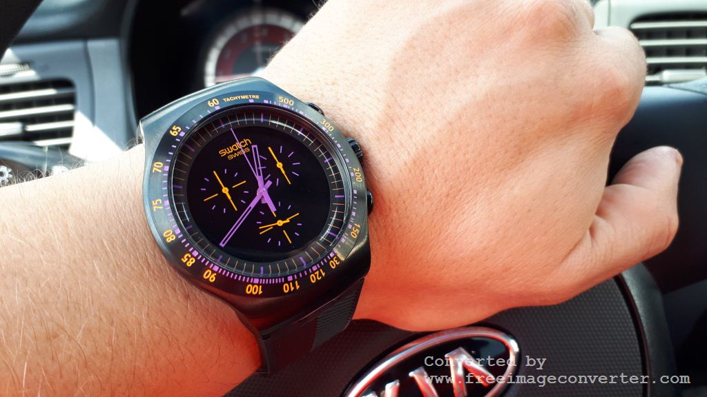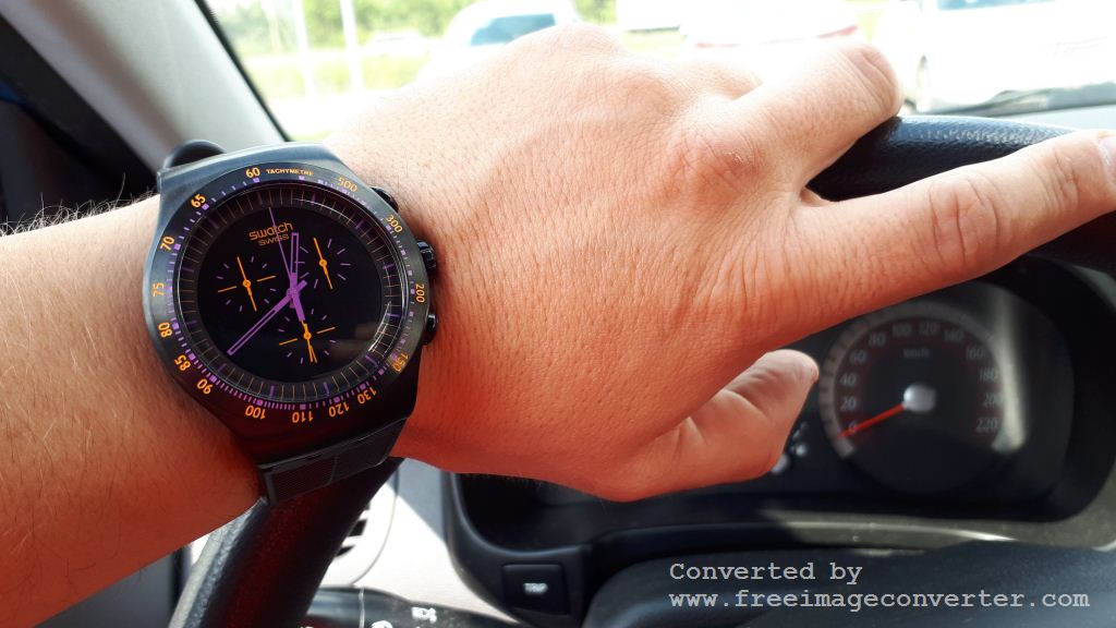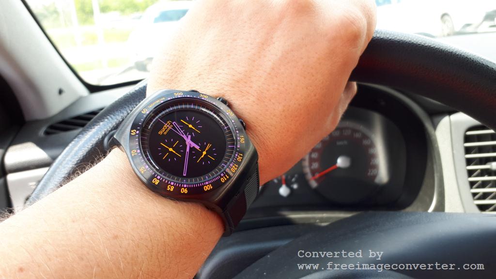 Крепление ремешка естественно фирменное свотчевское, но за счет черного цвета корпуса и ремешка, эти фирменные четыре дужки для крепления ремня вообще не заметны, чего я и хотел, так как мне никогда не нравилось когда их явственно видно на контрастном с корпусом ремне.