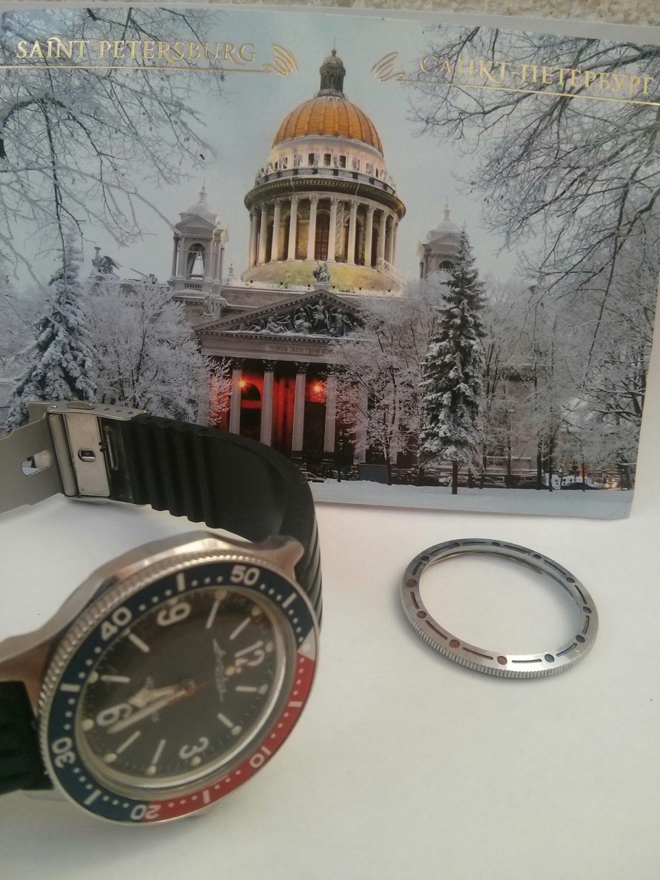 Доброго времени суток. Решил поменять стандартный безель на безель от уважаемого форумчанина DmitriiV. Сделан качественно из нержавейки с вклееной вставой пепси от сейко.