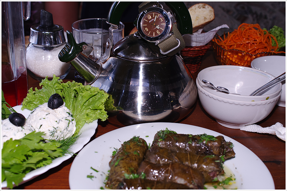 Да! Дастархан! В Крыму вообще вкуснее всего готовят у татар. А у татар сидеть за обычных столом и на стульях как-то не комильфо. Есть такая замечательная вещь, как дастархан. Ешь лёжа, поел – прилёг, привстал – поел. Красота! Подушки кругом.. Только разуться не забудьте.