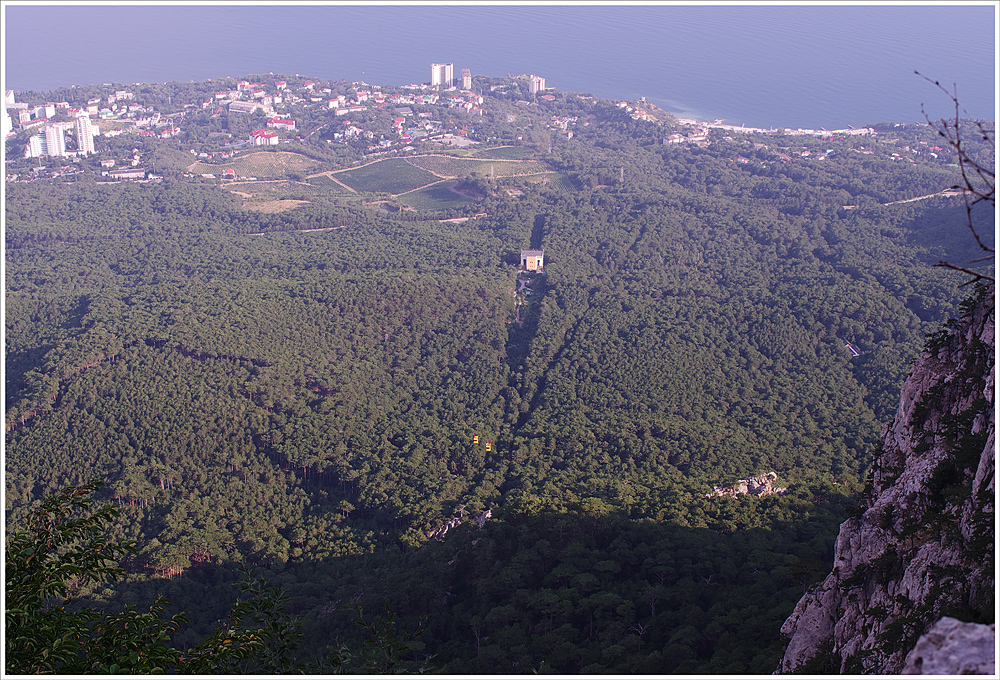 Гора Ай-Петри. Место, обязательное для посещения. Не самая высокая гора в Крыму, всего 1234 метра, зато почти отвесная. Уникальный природный комплекс, шикарные виды… Видно Ялту, Аю-Даг (Медведь-гору), у подножия - посёлки Алупка, Кореиз и Гаспра. По легенде, в очень хорошую погоду можно увидеть Турцию. Звиздят, разумеется, но красиво.