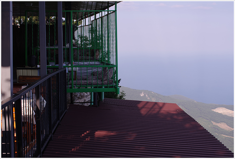 Единственный относительный минус – огромный караван-сарай, оккупировавший плато непосредственно у верхней станции канатной дороги. Про законность вообще говорить не будем. Но он там всегда был, при любой власти, и каждая власть обещает его снести.