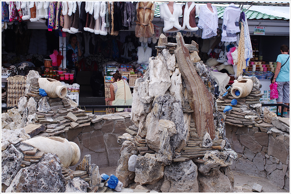 Если идти по краю караван-сарая, то весьма интересно посмотреть на экзотическую по равнинным меркам жизнь. Если же зайти вглубь, то становится совсем интересно. Чем глубже, тем меньше слышно языков славянской группы. Гортанные горные наречья, восточный гвалт, кидающиеся в ноги зазывалы, чурчхела, фески, туфли с загнутыми носами и без пяток, поделки из можжевельника и чьей-то шерсти, специи, специи, СПЕЦИИ, запах специй, лошадей, верблюдов, плова, дровяных очагов и острые тонкие струи чудом прорвавшегося горного воздуха. Интересно.