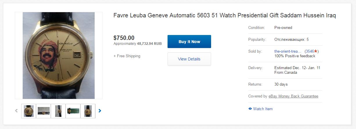 Совершенно верно. С поправочкой, что не обязательно Rolex, но хорошие часы. Правда вполне могло быть, что если моей бывшей тёще, которая была личной переводчицей у Саддама, подарили Omega, то, например, членам делегаций рангом пониже вполне могли всучить и такие. Оптом. Что, впрочем, не делает эти часы ценнее.