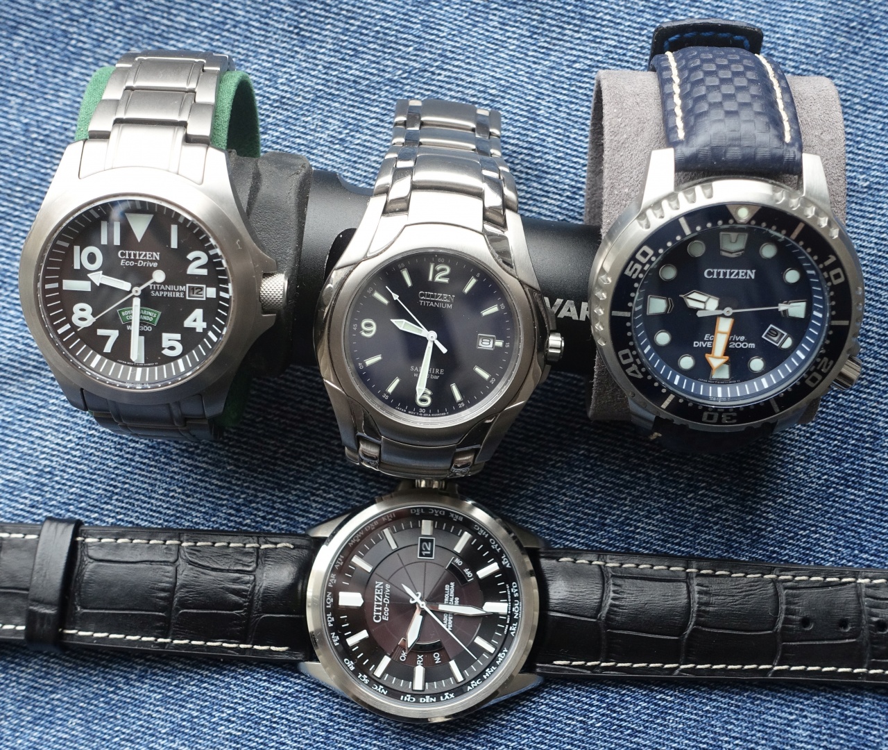 Japan: Seiko Sumo Chronograph / Citizen Nighthawk Radio Controlled / Seiko Sportura Chronograph Swiss: Hamilton Khaki Air Race Chronograph / Victorinox Ambassador Automatic