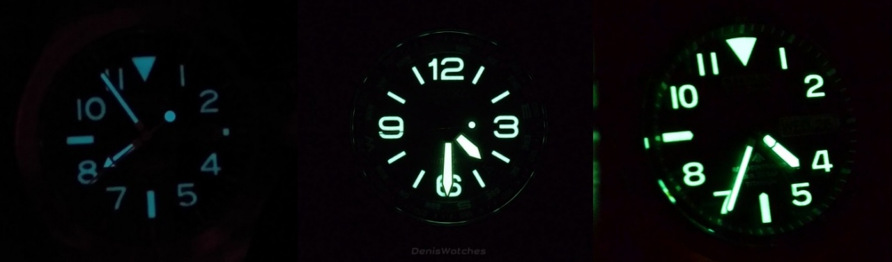 Самый распространенный люм - это люм на стрелках и всех метках или только на стрелках, или на стрелках и некоторых метках. Здесь, для примера, люм тех часов, что я предлагал из имеющихся на маркете. Думаю, разберетесь, какой люм от каких часов.
