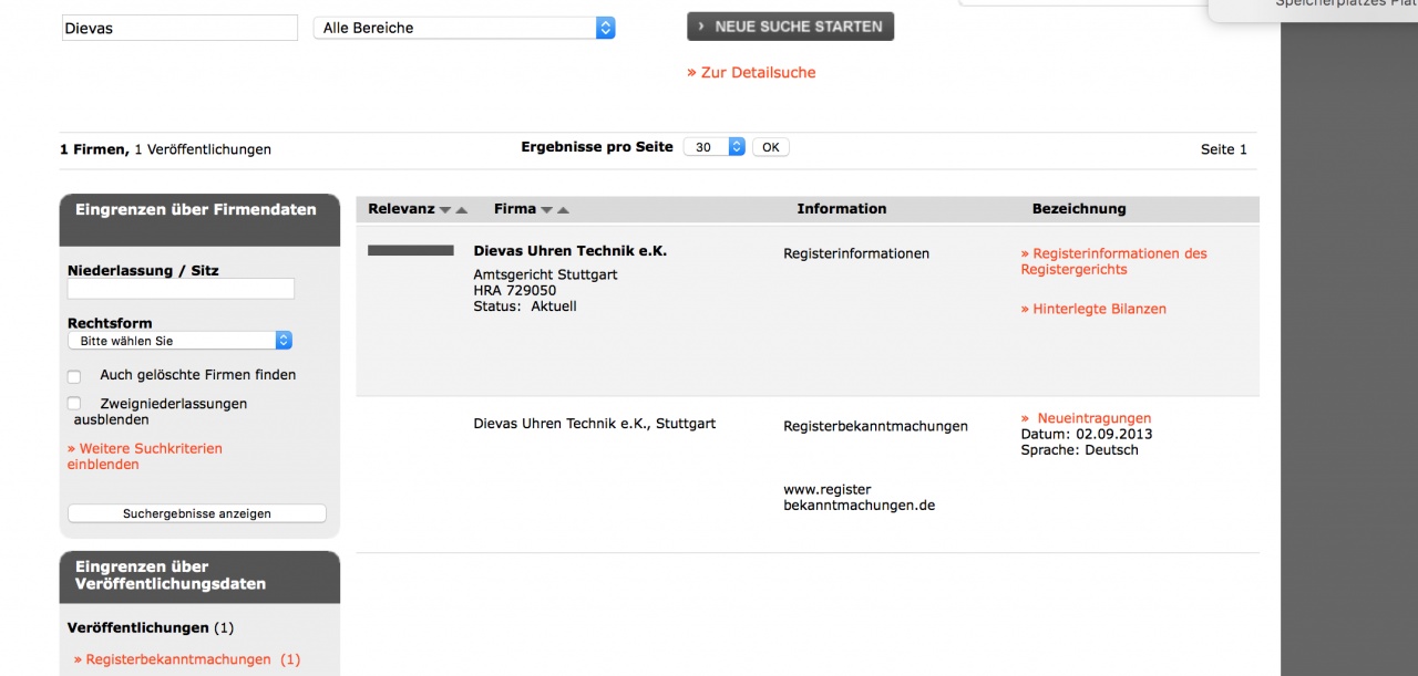 З.З.Ы. не уверен, что ссылка на unternehmensregister работает правильно. На всякий случай ниже принтскрин.
