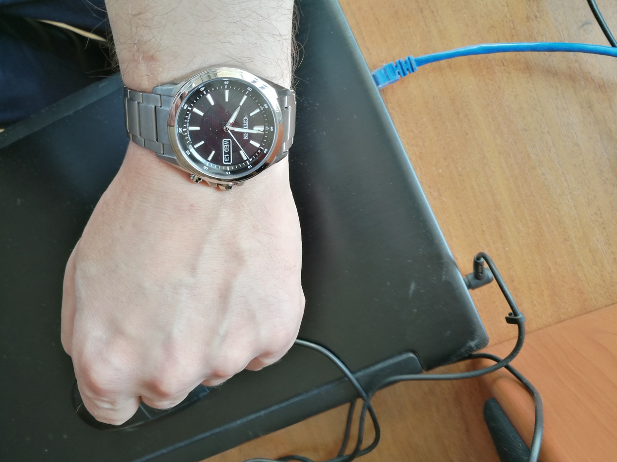 4. Тот японский ситизен, который ко мне приехал имеет офигительно читаемый цифер (белая на черном дата и день недели - это хорошо), "мировое время" (т.е. перевод поясов) реализовано вполне удобно.