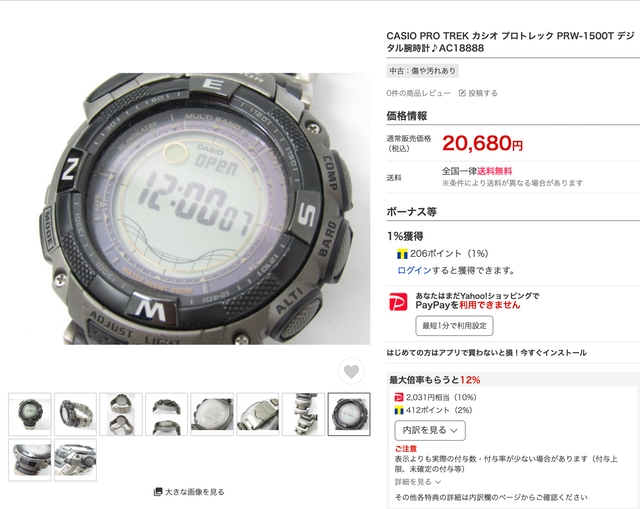 P.S. У нас до сих пор продаются старые модели протреков и стоят они почти как новые PRW-30. На первой фотографии часы CASIO 1500T продают за 20 000 иен. Делите иены на 100 и получите доллары, а доллары уже легко перевести в любую другую денежную единицу. Т.е. если эти протреки стоят 20 000 иен, то делим на 100 и получаем 200 долларов. Напомню, что свои PRW-30 я вчера купил за 250 долларов.