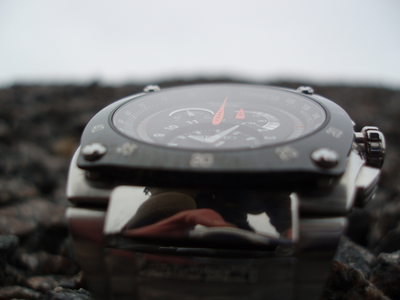 Большая часть циферблата отдана под хронограф, а сами часы скромно примостились внизу, занимая от силы 1о% общей площади. Секундомер, не иначе