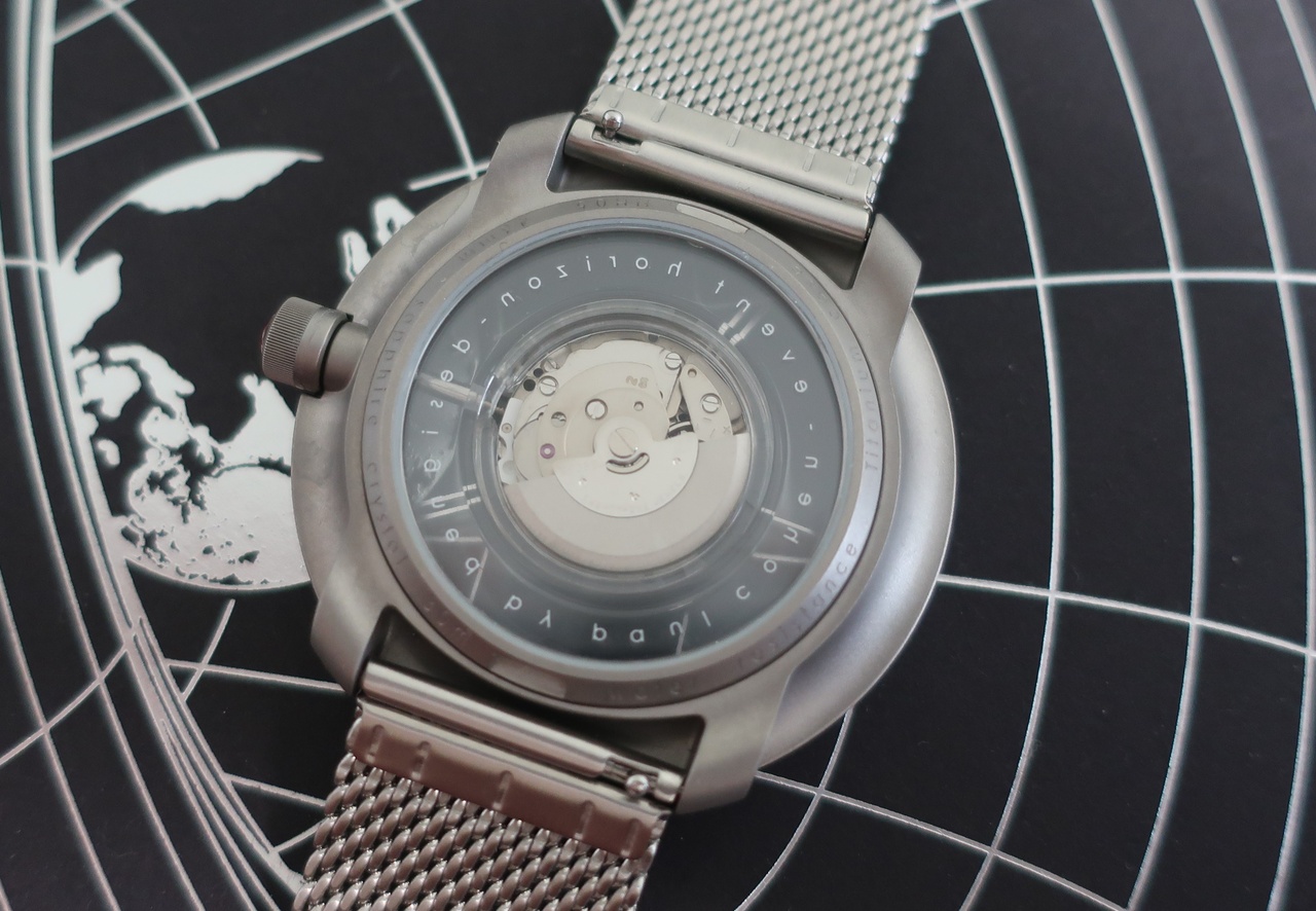 В часах установлен калибр Seiko NH05. У него есть двусторонний автоподзавод и ручной завод, а вот стоп-секунды нет. Он мал по размеру и вообще позиционируется как калибр для женских часов, но для концепции Event Horizon как раз и был нужен такой малыш. Запас хода — 40 часов, паспортная точность — запредельно-перестраховочные -35…+35 секунд в сутки. Реальная, как обычно, существенно лучше.